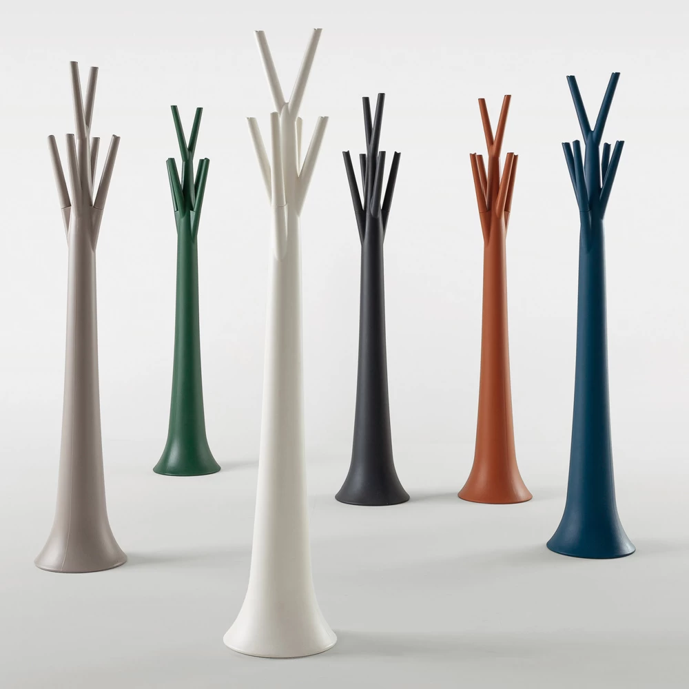 Cintre d’origine en polyéthylène coloré en masse avec une forme élancée qui rappelle un arbre.