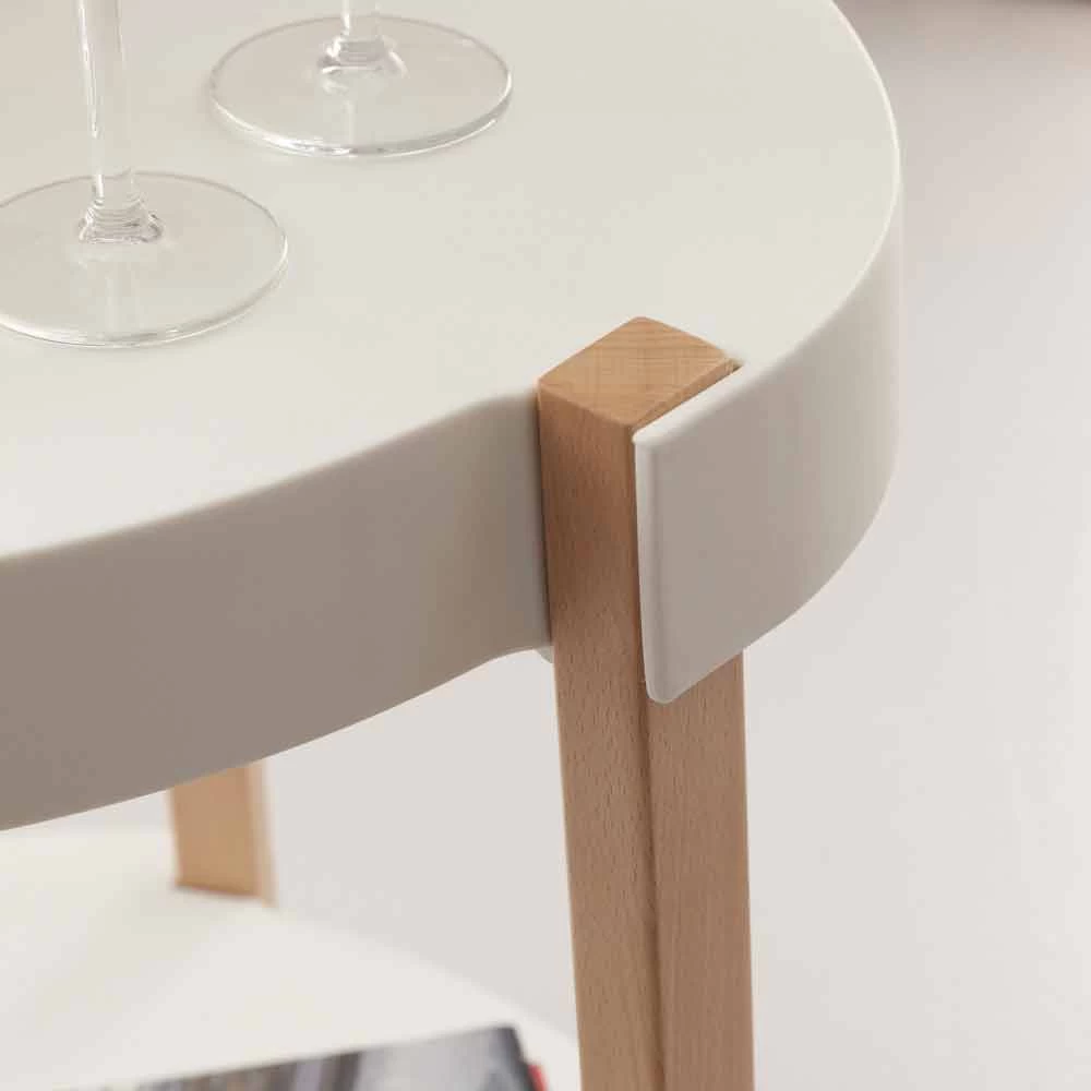 Structure en hêtre massif avec étagères en polypropylène blanc.