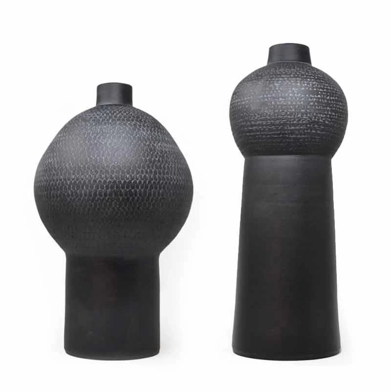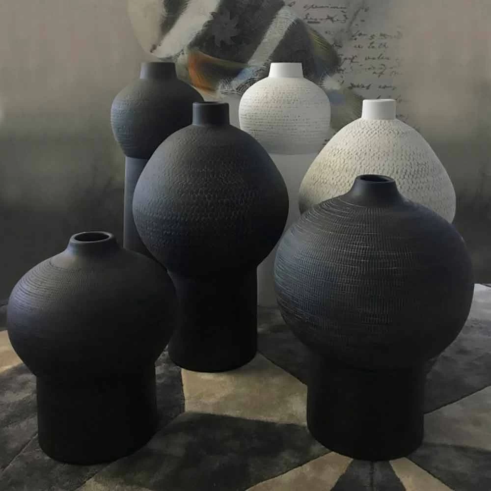 Composition de pots d’intérieur en céramique avec décorations. Une solution d’ameublement au design moderne conçue pour ceux qui aiment meubler et compléter leurs espaces avec personnalité et élégance . Idéal pour les intérieurs de maison mais aussi pour le bureau ou pour les environnements contractuels, cette paire de vases peut être placée n’importe où, sur des tables basses, sur des étagères ou même comme pièce maîtresse, donnant une touche décorative et esthétique à toute la pièce.