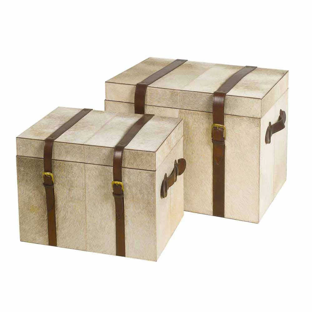 Lot de deux malles de design fonctionelles et élégants avec des pratique poignées et fermeture avec boucles très résistantes.