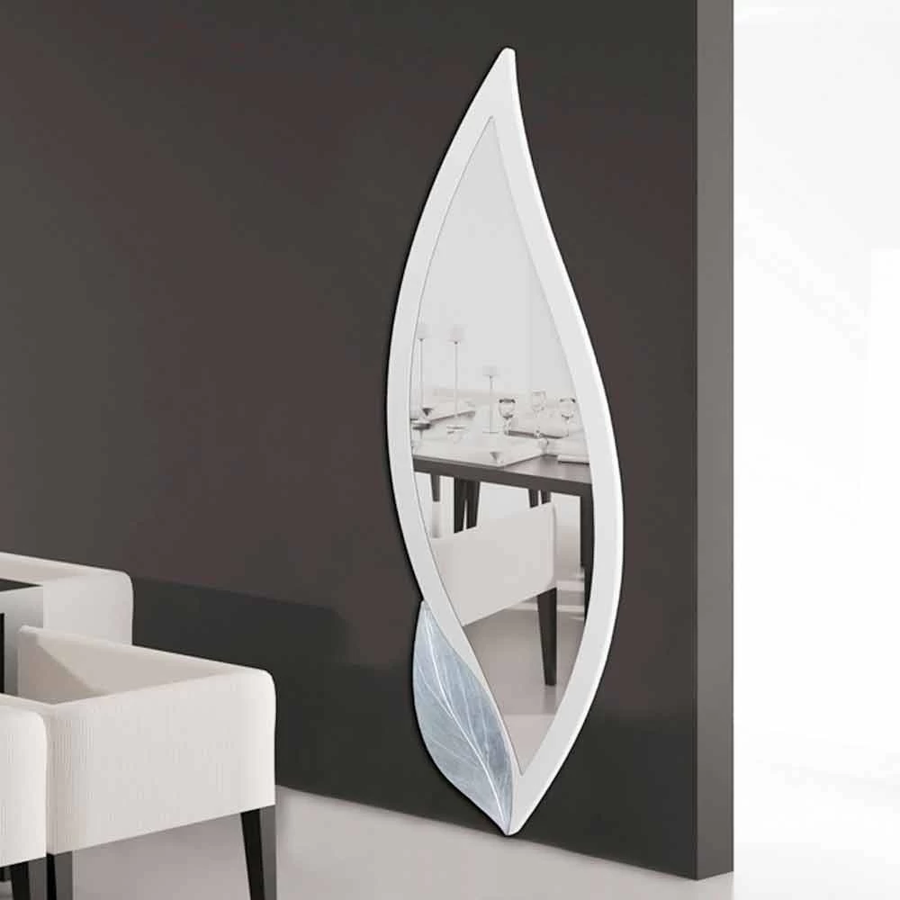 Ce miroir est fait en bois MDF avec finition ivoire et décoration en relief en feuille d’argent faite à la main.