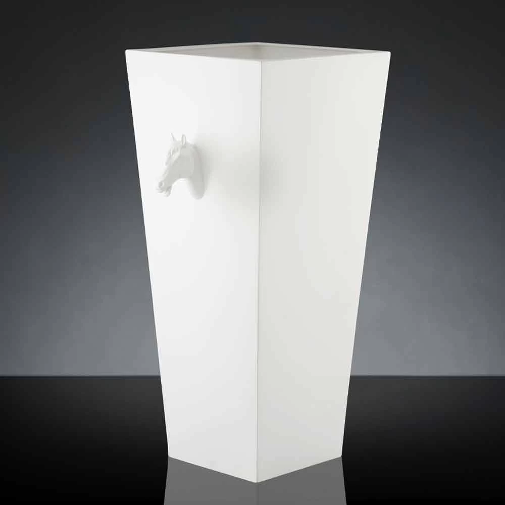 Vase décoratif pour intérieurs de forme carrée en céramique blanche opaque fabriquée à la main en Italie par des artisans experts du secteur depuis des générations. Un complément avec une esthétique essentielle et élégante enrichie et rendue unique par les détails originaux en forme de cheval positionnés dans la partie supérieure du vase qui soulignent son âme créative et en font une solution parfaite pour les environnements de style classique et les espaces plus modernes dans lesquels il crée un merveilleux jeu de contrastes entre différents styles. L’utilisation de la céramique et de l’ artisanat augmente sa valeur et sa valeur pour donner vie à un résultat exclusif et de haute qualité . Un design idéal pour les environnements les plus variés, de l’ameublement à celui des hôtels, restaurants, espaces contract, spas mais aussi comme cadre pour des événements et des mariages.