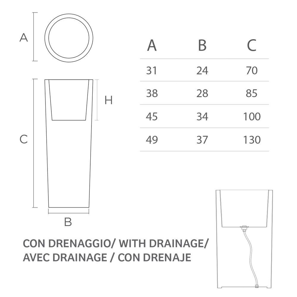 La structure comprend un kit de drainage de l’eau pour permettre à ce vase de meubler les espaces intérieurs et extérieurs sans sacrifier l’aspect pratique et fonctionnel.