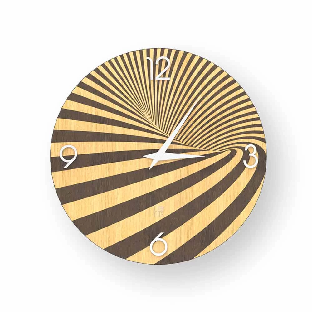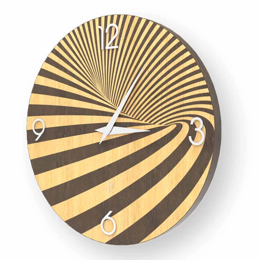– Chaud: essences de lati de couleur chêne et wengé. Le bord en lati couleur wengé, les aiguilles et les chiffres sont en aluminium naturel;