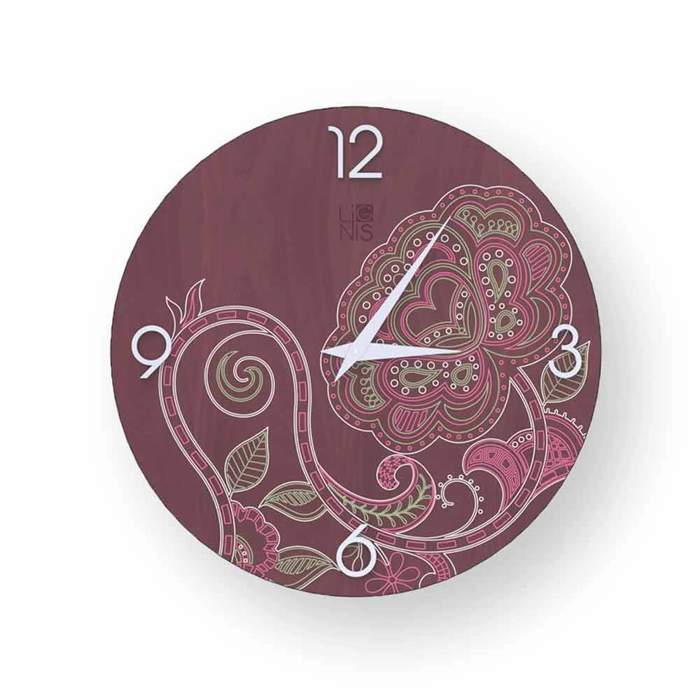 – Couleurs: essence de bolivar de grignons violets. La tranche est en frêne noir et les aiguilles et chiffres en aluminium naturel.