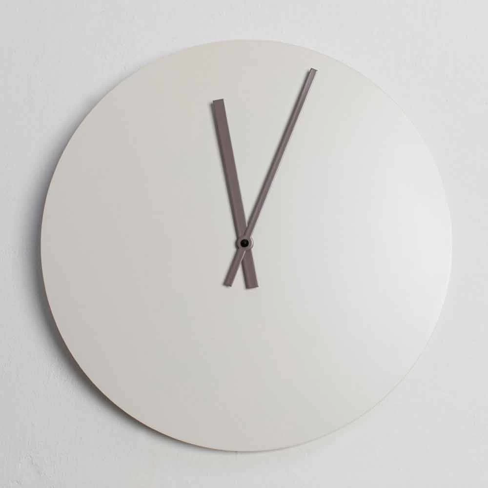 Horloge murale en bois laqué sable et cacao, avec un design moderne et rond made in Italy.