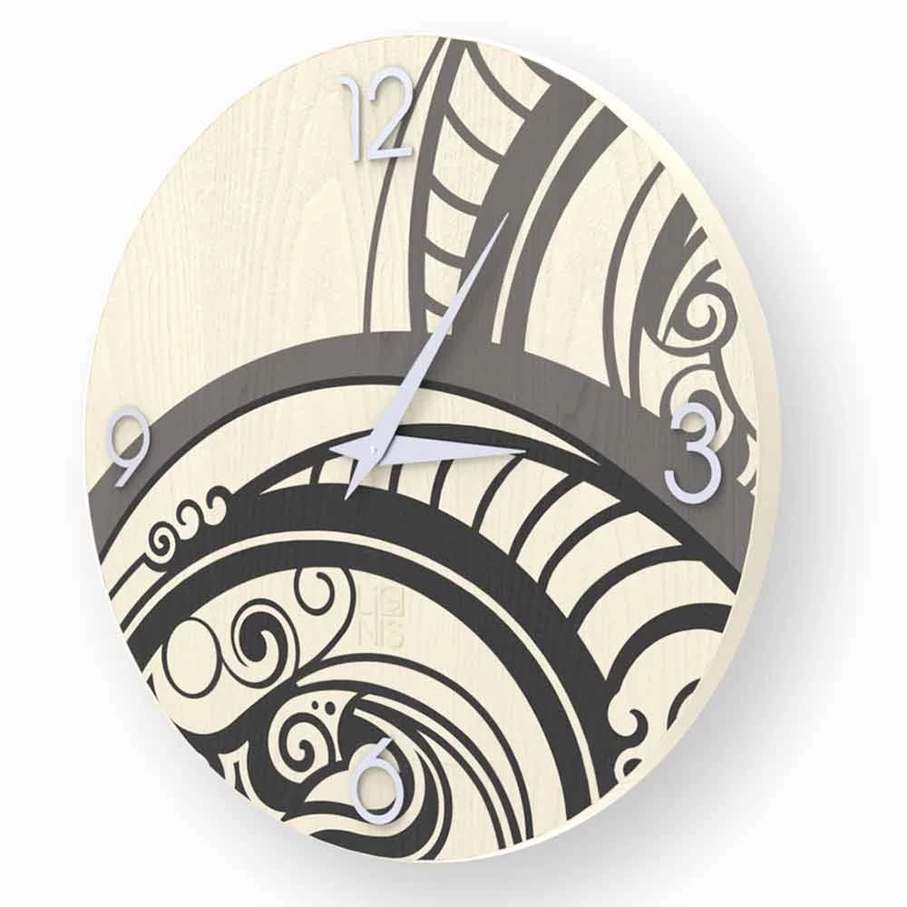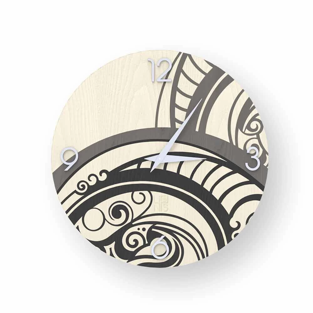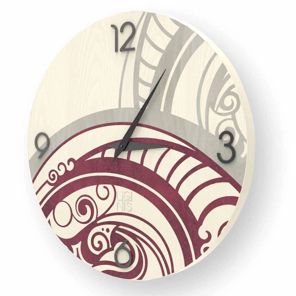 – Couleurs: essence de bois de frêne blanc, violet érable et bolivar gris clair. Le bord est en frêne blanc et les aiguilles et chiffres en aluminium teinté noir.