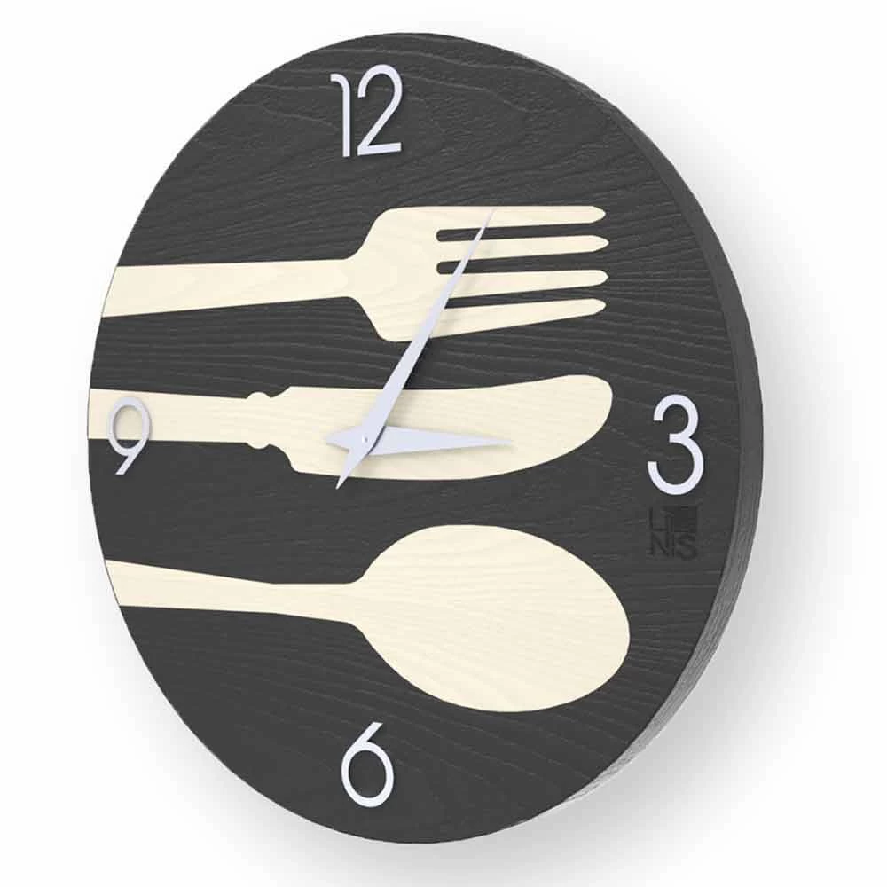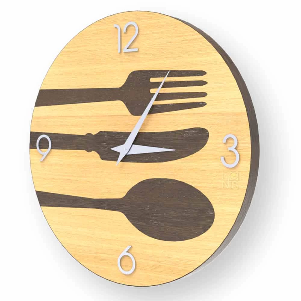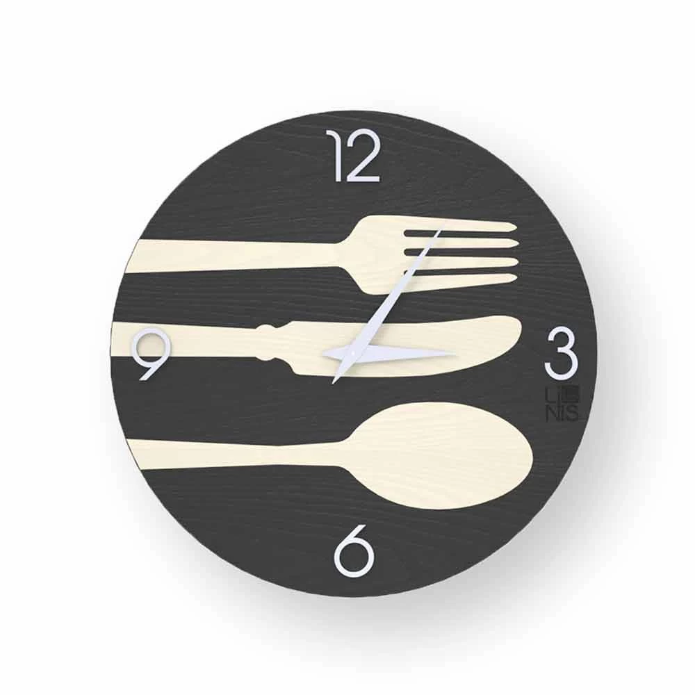 Clivio est une horloge parfaite pour décorer les murs de votre cuisine grâce aux dessins de couverts ci-dessus. Une idée originale en dehors des schémas traditionnels pour battre le temps de manière vivante et ludique.