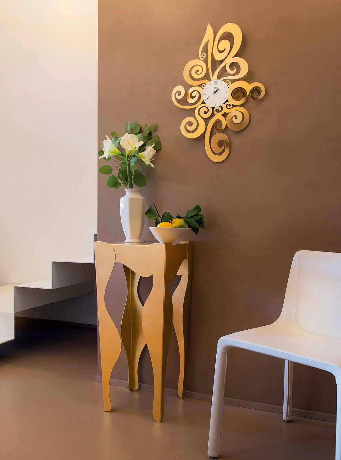 Horloge murale de style moderne fabriquée en Italie en fer blanc, dégradé d’or ou noir.