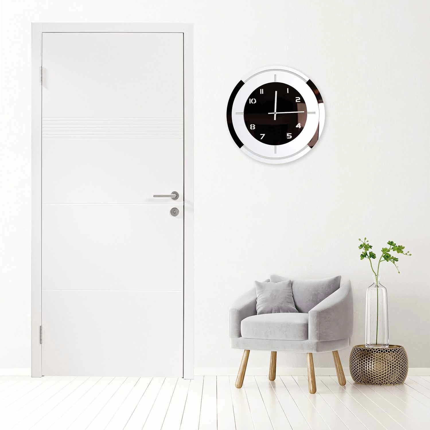 Horloge murale ronde en bois laqué blanc avec des décorations en pelxiglass bronze, design moderne fabriqué en Italie.