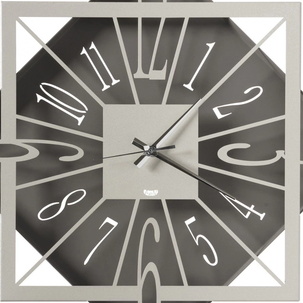 Horloge murale en fer avec un design carré rhomboïdal en 2 tailles et 3 finitions fabriquées en Italie.