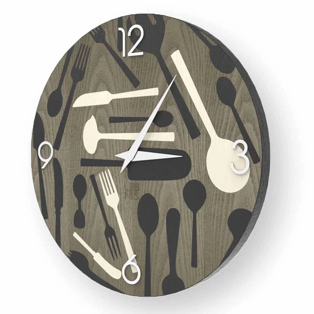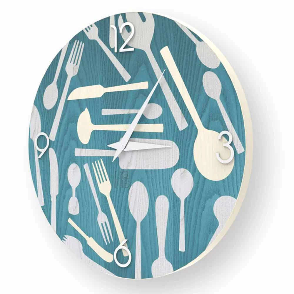 Ispra est une horloge parfaite pour décorer les murs de votre cuisine. Fourchettes, couteaux et cuillères prennent vie à la surface de cette horloge qui aménage votre espace intérieur de manière originale et créative.