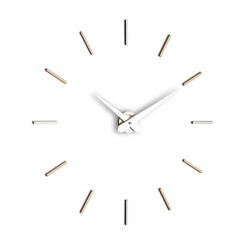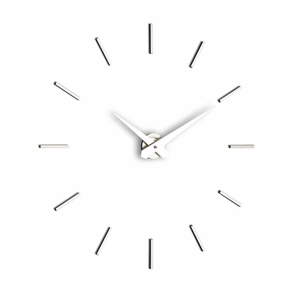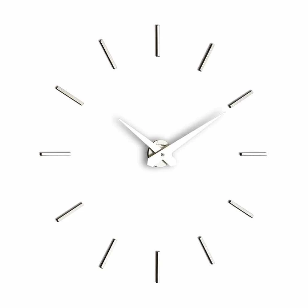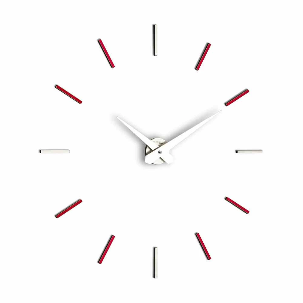 L’horloge est disponible en cinq versions: métal, métal blanc, métal tourterelle, et métal bordeaux.