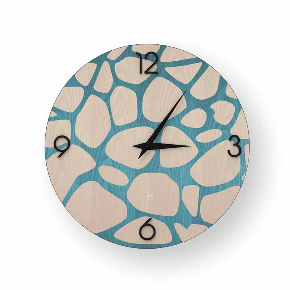 Morolo est une horloge murale qui exprime à la fois rigueur et créativité. Une touche de mobilier qui émane de la légèreté et de l’énergie et qui s’adapte parfaitement à n’importe quel espace domestique. Les dessins stylisés sur la surface font référence aux pierres, donnant vie à une vision légère et relaxante de la nature.