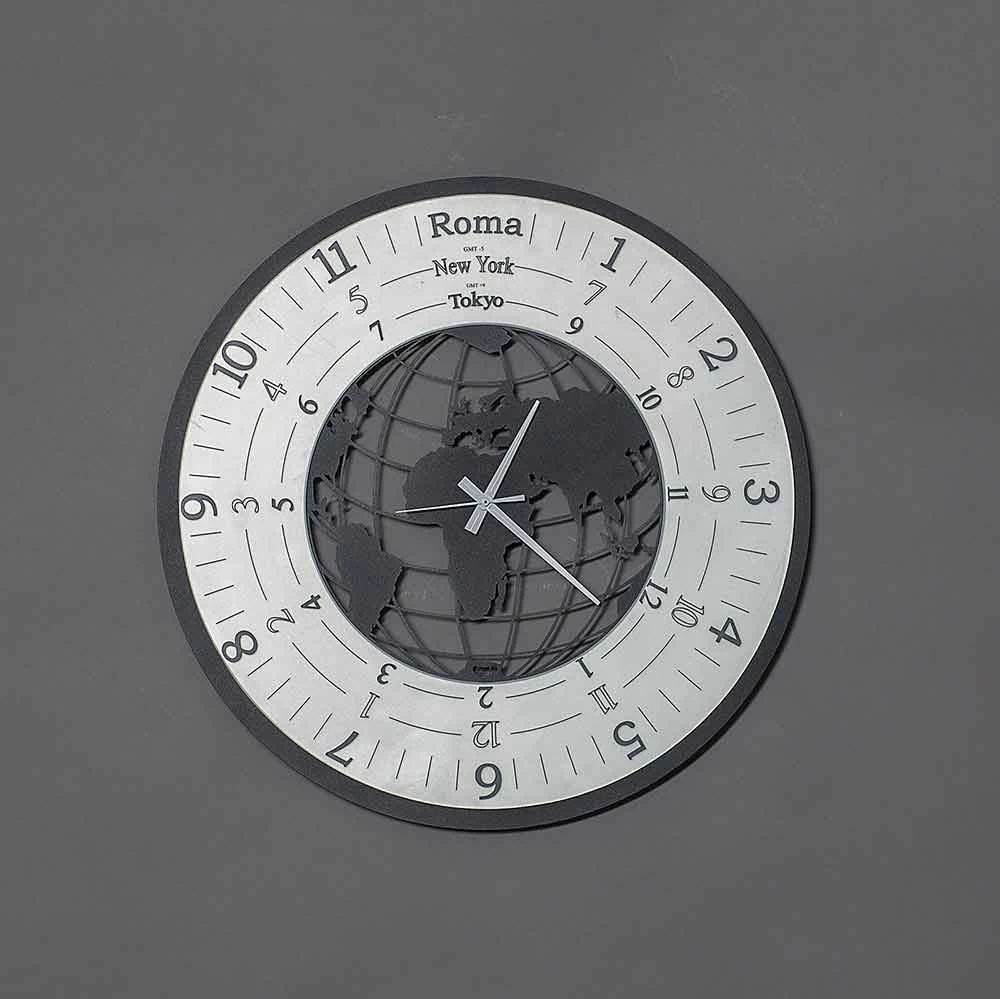 Horloge murale ronde au design moderne en fer noir ou en ardoise fabriquée en Italie.