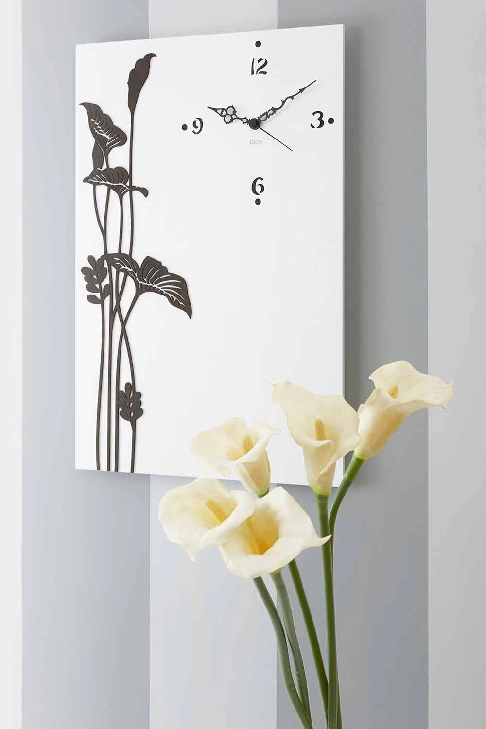 Horloge murale blanche avec décorations, design en bois moderne fabriqué en Italie.