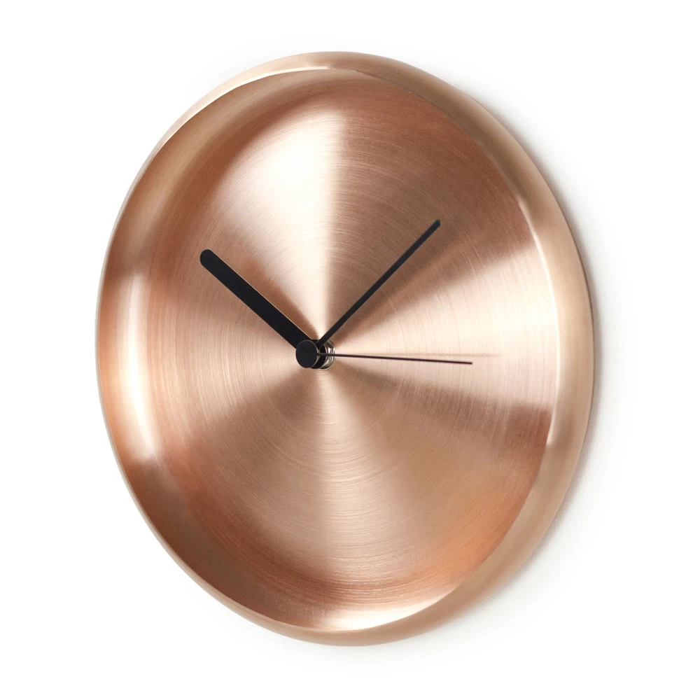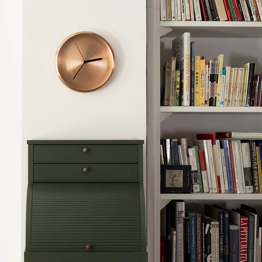 Horloge murale design ronde entièrement en cuivre Made in Italy.