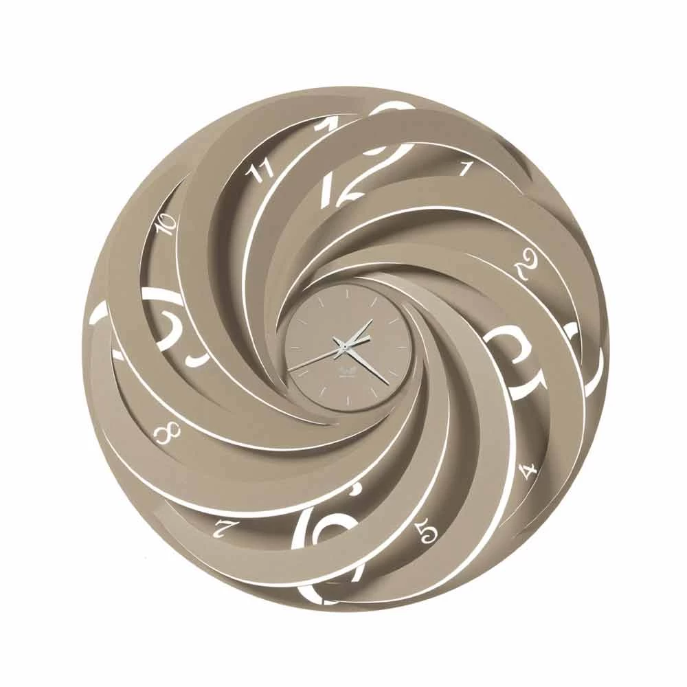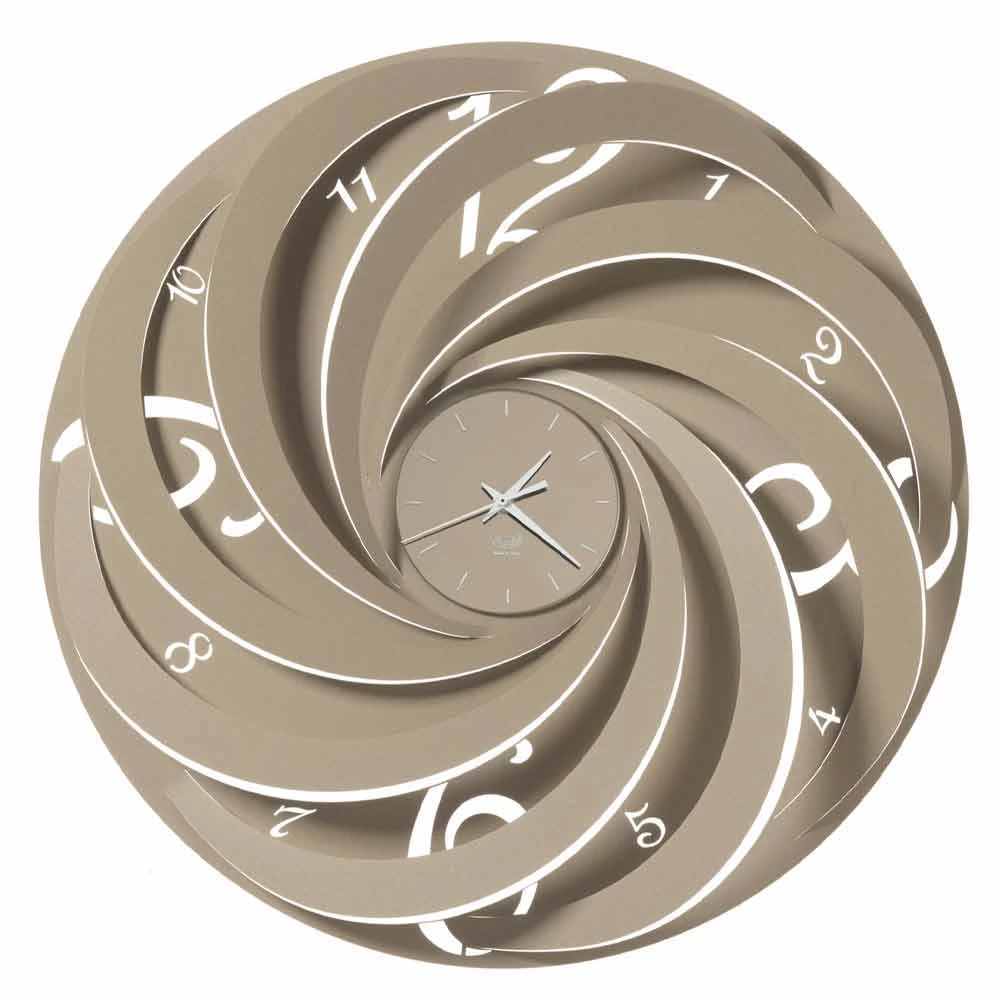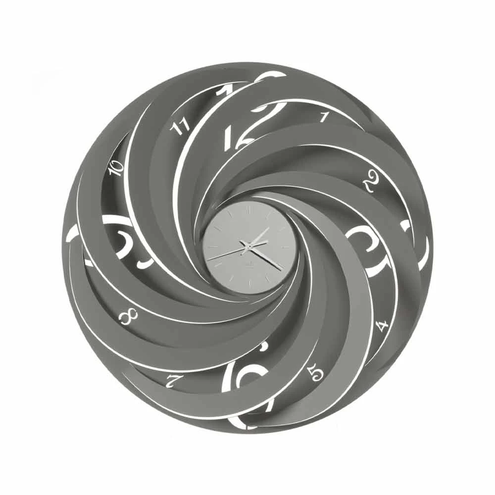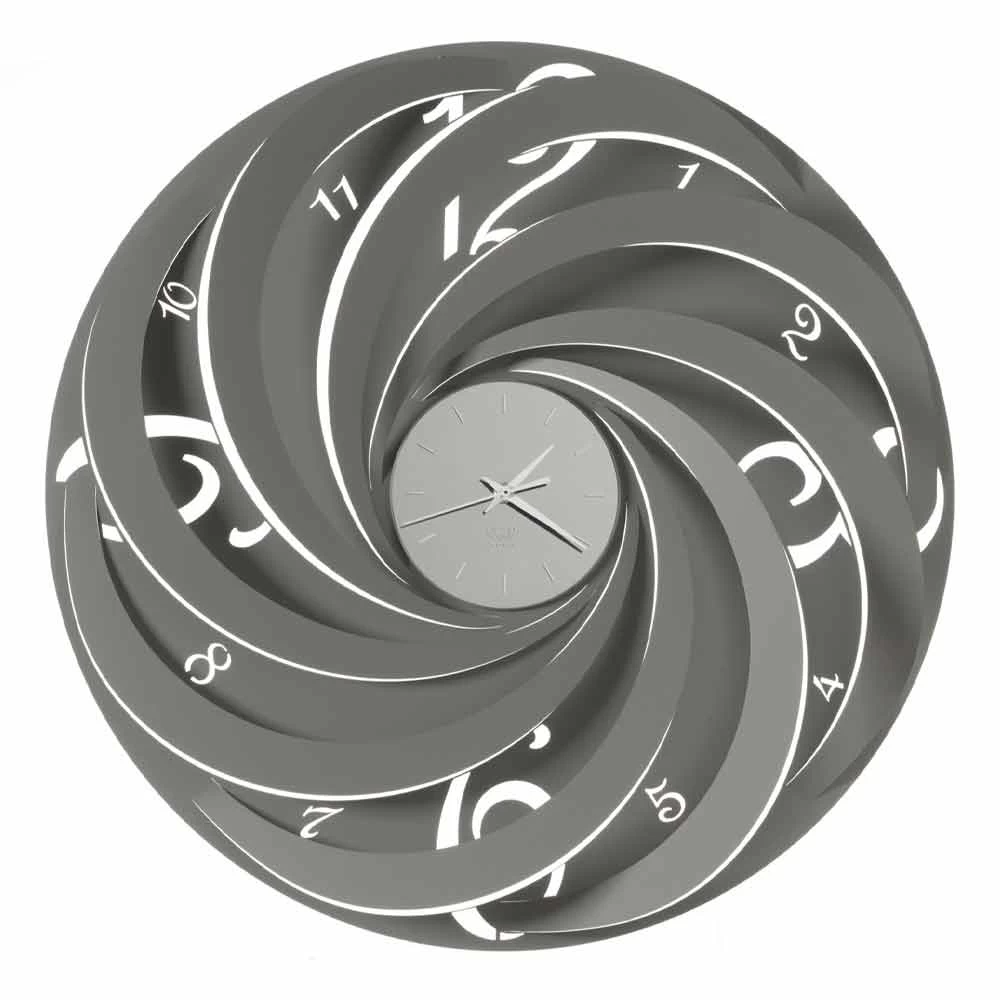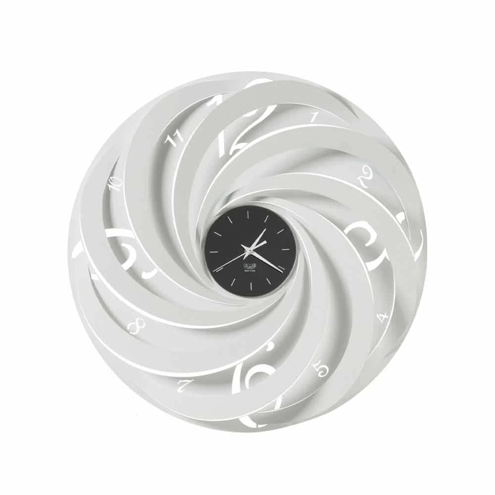 Caractérisée par un « vortex » sur la surface qui révèle les chiffres sous-jacents et crée mouvement et dynamisme dans l’objet, l’horloge est parfaite pour toute pièce meublée dans un style moderne et élégant.