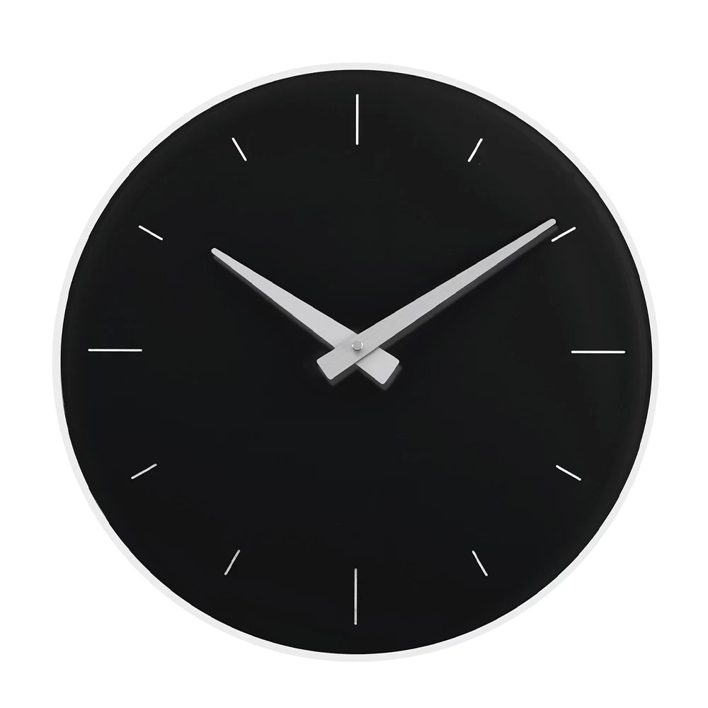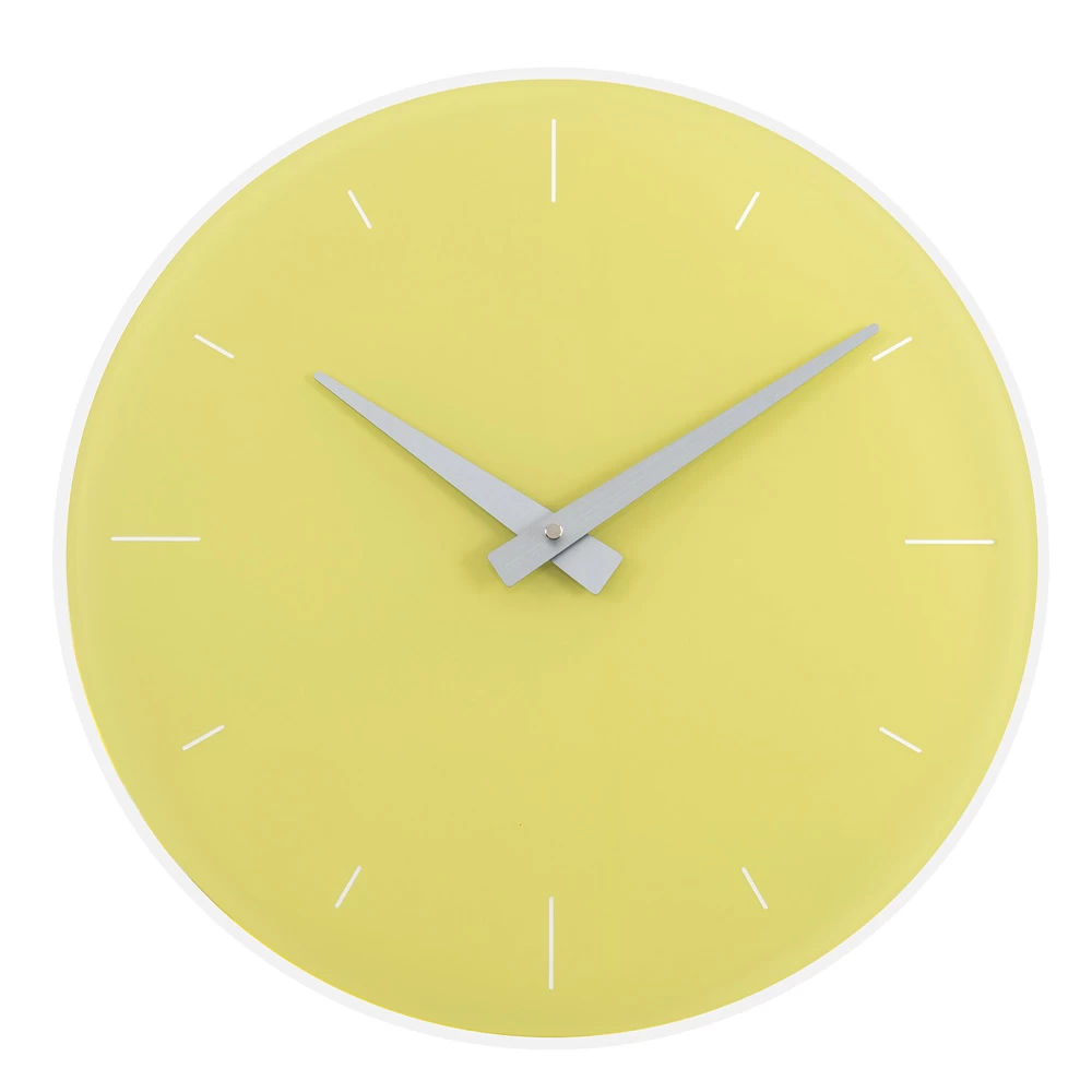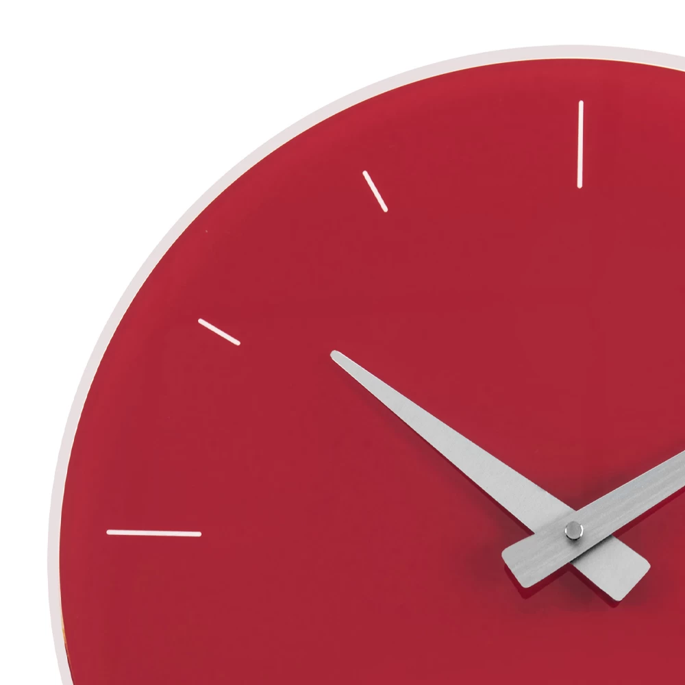 Horloge murale ronde en plexiglas coloré et décoré, design made in Italy.