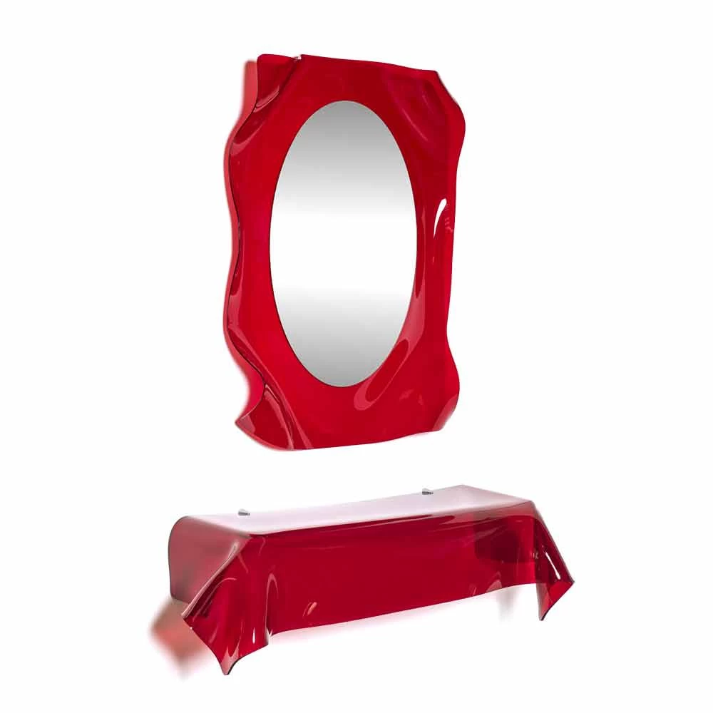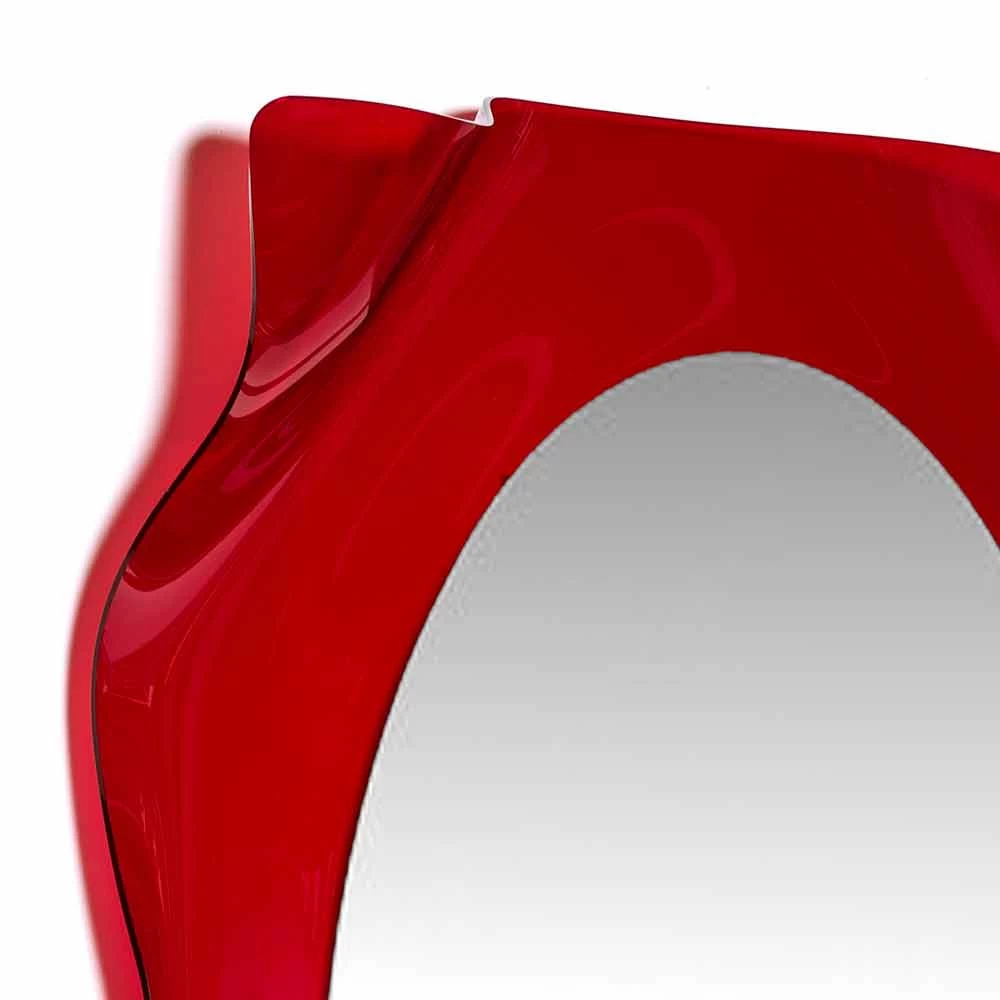 Diva représente une véritable œuvre d’art moderne en plexiglas PMMA rouge, réalisée à partir d’une plaque de polymère 100% vierge drapée à la main à haute température. Le miroir dipose d’un cadre unique et inimitable.