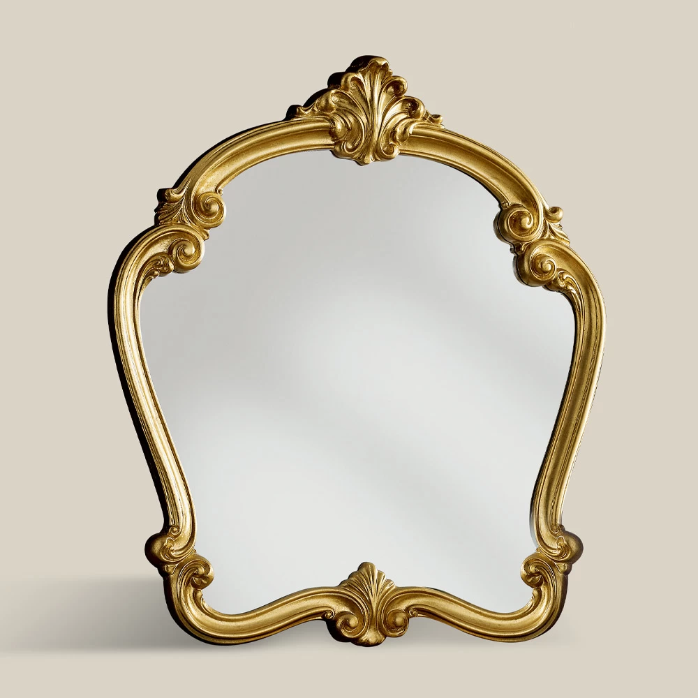 Miroir classique avec cadre en bois façonné décoré à la feuille d’or. Avec ses formes élégantes et harmonieuses, il est idéal pour donner à n’importe quel environnement une touche classique et luxueuse .