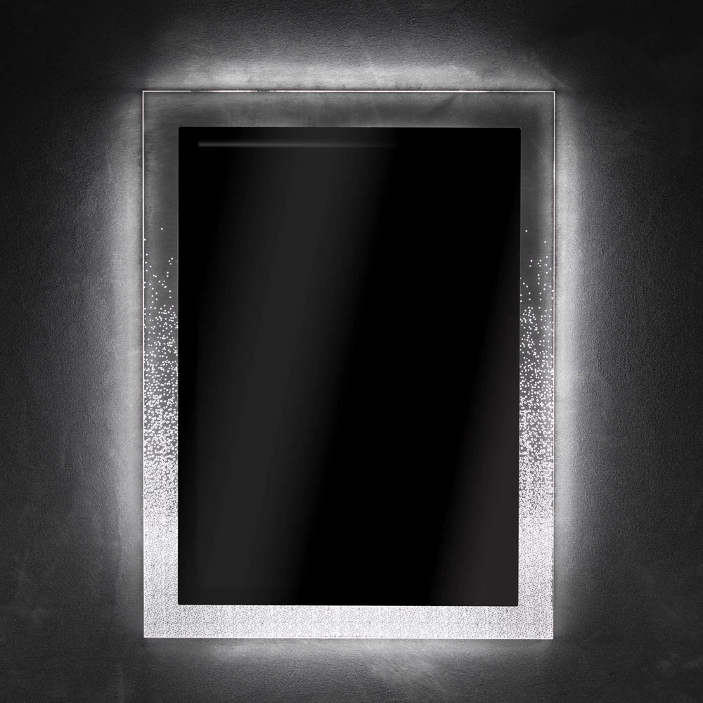 Ce miroir lumineux est obtenu en découpant un cadre en cristal acrylique gravé au laser avec des décors de bulles et un rétroéclairage LED en un seul bloc.