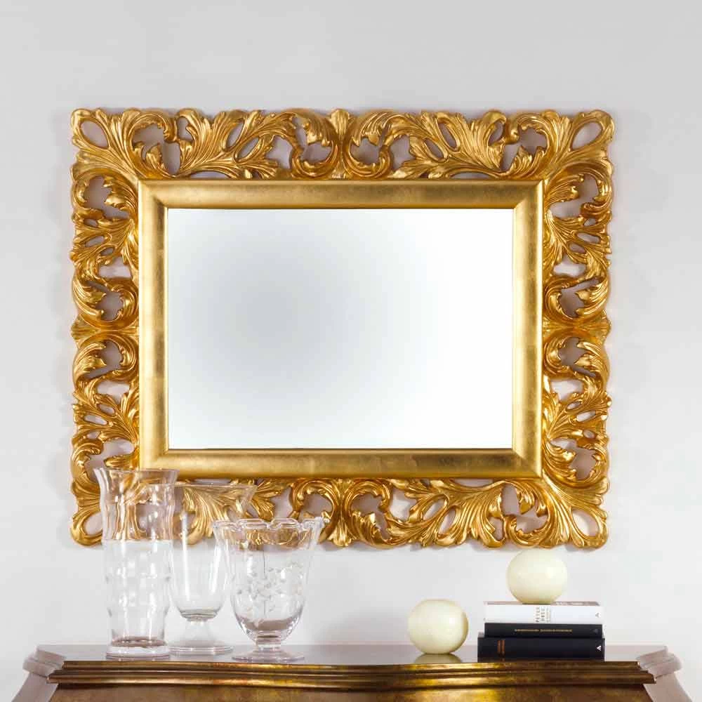 Le miroir Gudin est realiseé avec matériaux précieux grâce à la maÎtrise des artisans italiens. Le cadre est réalisé en bois finition feuille d’ or. Miroir en cristal moulé, épaisseur 4 mm. Made in Italy.