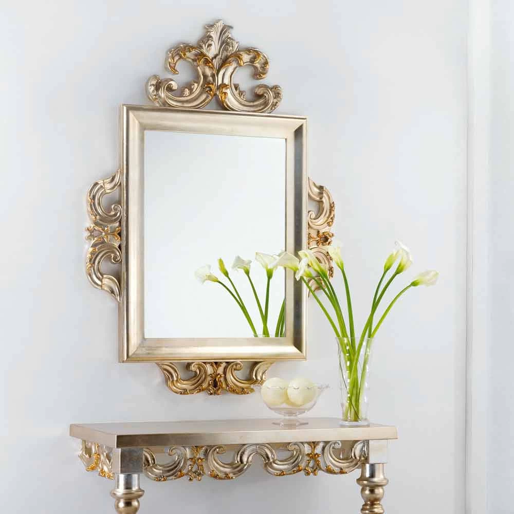 Le miroir Guy est realiseé avec matériaux précieux grâce à la maÎtrise des artisans italiens. Le cadre est réalisé en bois, finition feuille d’argent antique.