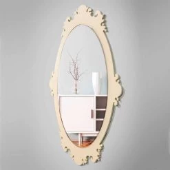 Miroir en bois laqué parfait pour les environnements de style classique, compte tenu de son design rétro, à la fois dans le salon et dans la chambre.