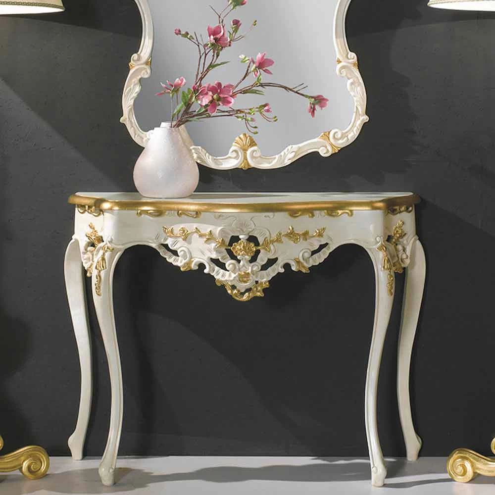 Miroir mural en bois ayous et pâte de bois et console en bois geloton avec plateau en MDF, une combinaison parfaite pour embellir votre salon.