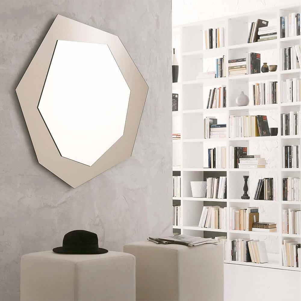 Miroir mural de forme fabriqué en Italie avec cadre en verre fumé ou bronzé. Un accessoire créatif et éclectique qui parvient à transformer n’importe quel environnement en améliorant sa perception et en agissant comme un point lumineux fondamental dans la pièce, réussissant ainsi à agrandir optiquement les espaces. L’originalité de ses formes se combine à l’élégance des finitions disponibles, créant ainsi une solution d’ameublement capable de remplir de grands murs avec un élément décoratif unique au style raffiné . Les deux tailles disponibles permettent à ce miroir de répondre à chaque type de demande et de besoin, réussissant à enrichir l’ameublement de chaque pièce avec un goût moderne et démontrant ainsi une extrême polyvalence.
