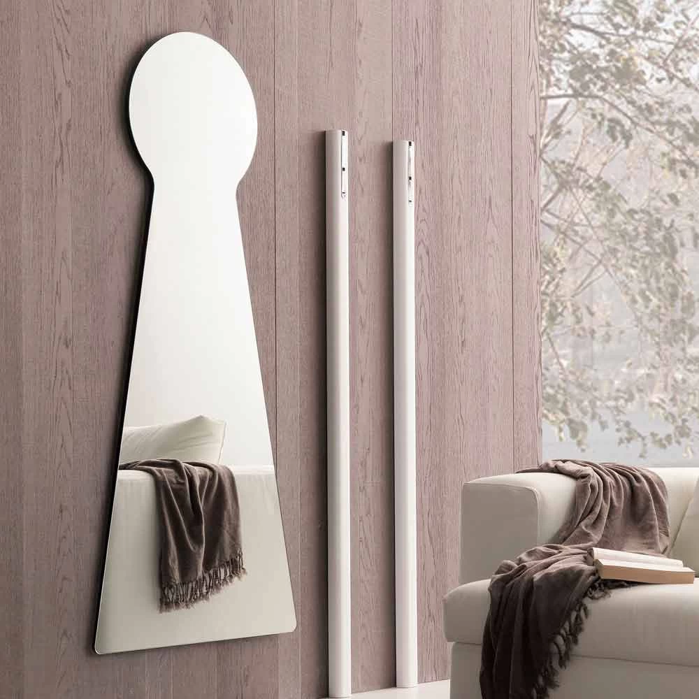 Miroir mural de forme originale fabriqué en Italie avec panneau de rétroviseur en mélaminé. Ce meuble au design extrêmement créatif et avant-gardiste s’adapte parfaitement à toute situation d’ameublement moderne dans laquelle il parvient à caractériser l’environnement, le rendant plus lumineux et plus spacieux. Ses dimensions imposantes en font un choix particulièrement adapté pour les grandes pièces aux grands murs à remplir d’une touche de personnalité et de style unique. Le miroir représente un accessoire éclectique et particulièrement polyvalent , capable de transformer et d’améliorer la perception de n’importe quel environnement. Il représente un élément fondamental qui parvient à agrandir optiquement les espaces tout en agissant en même temps comme un point lumineux important.