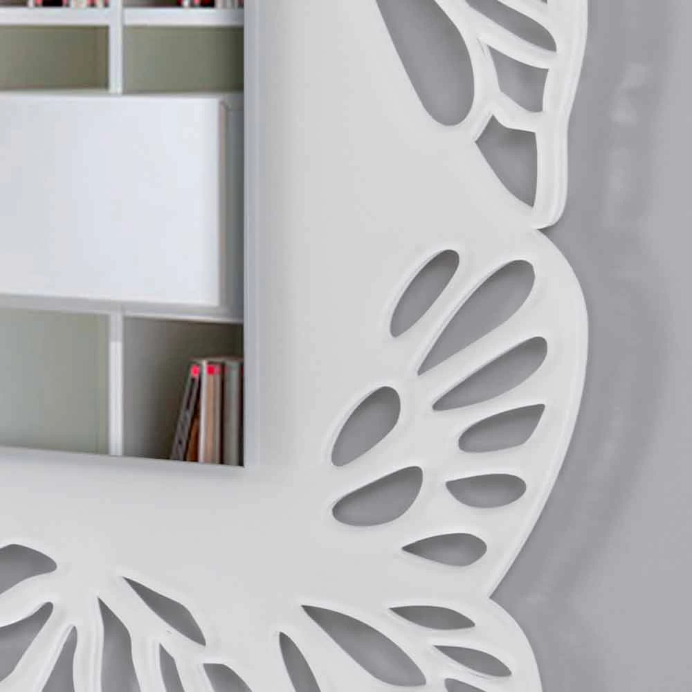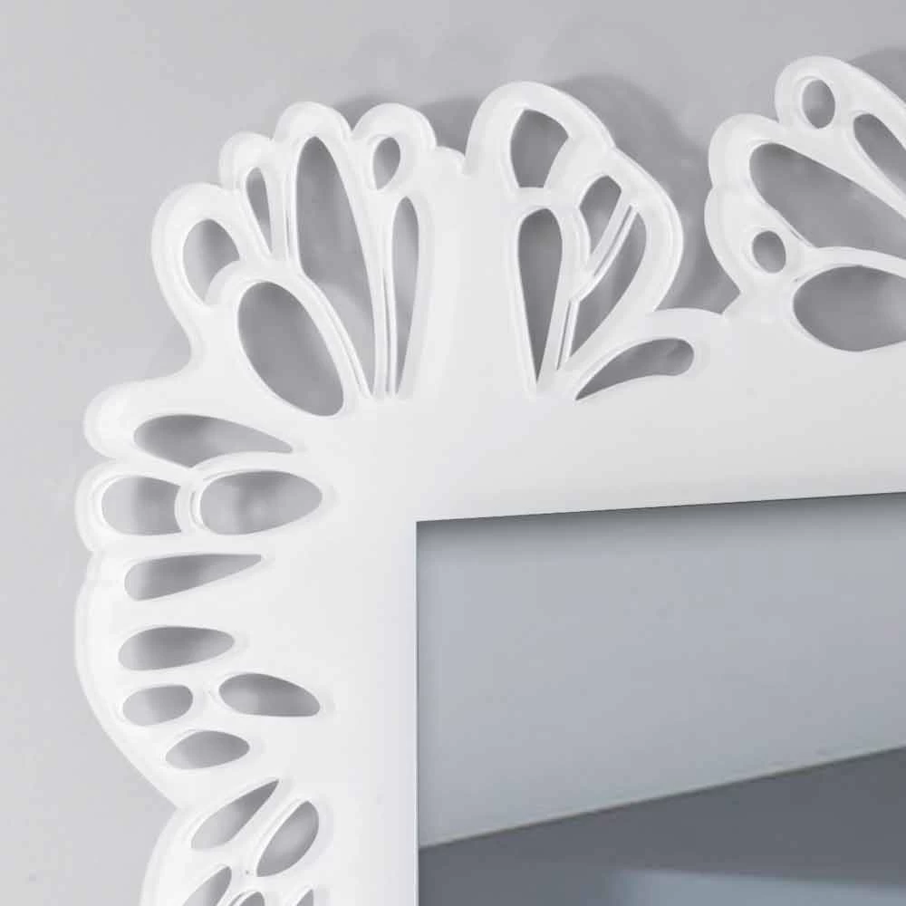 Miroir mural rectangulaire avec cadre décoré blanc, en plexiglas de design moderne fabriqué en Italie.