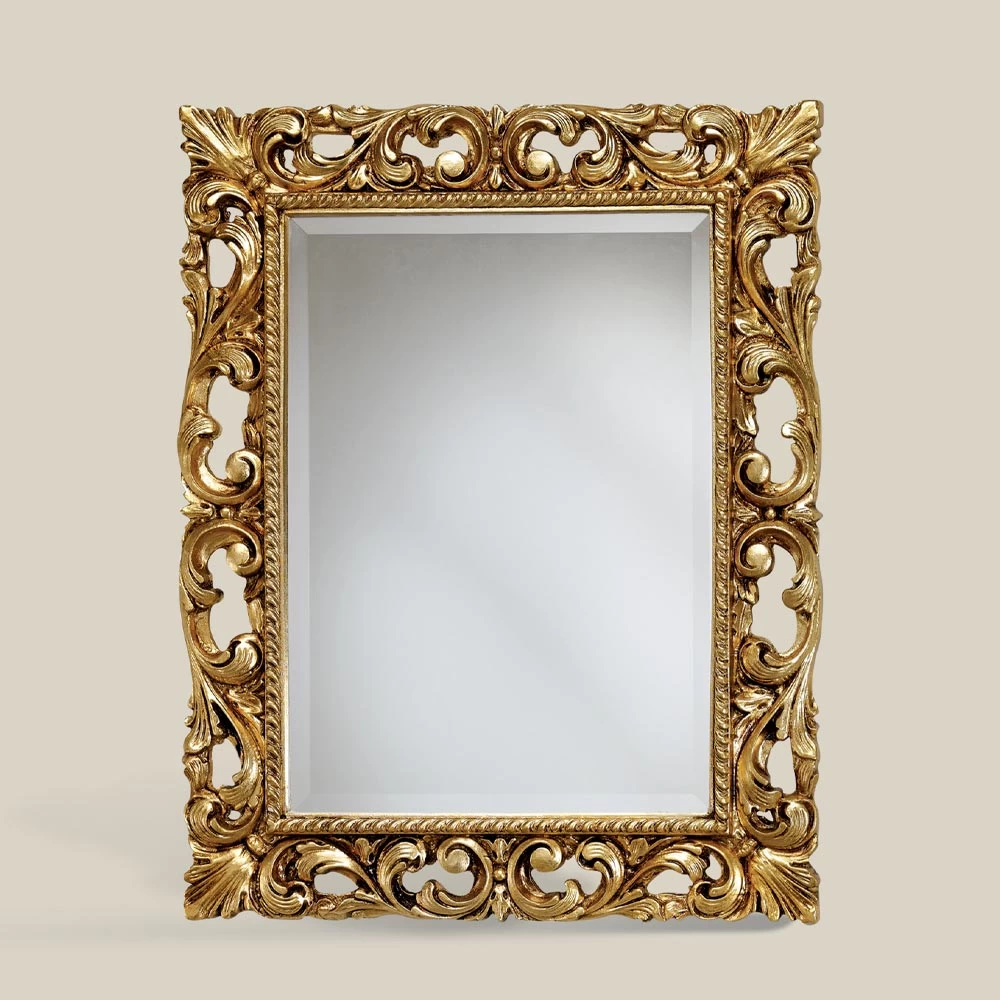 Miroir rectangulaire classique avec cadre en feuille d’or Made in Italy.