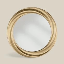 Miroir rond avec cadre en bois décoré à la feuille d’or . Grâce à son style classique , ce miroir est idéal pour donner à n’importe quelle pièce une touche élégante et luxueuse .
