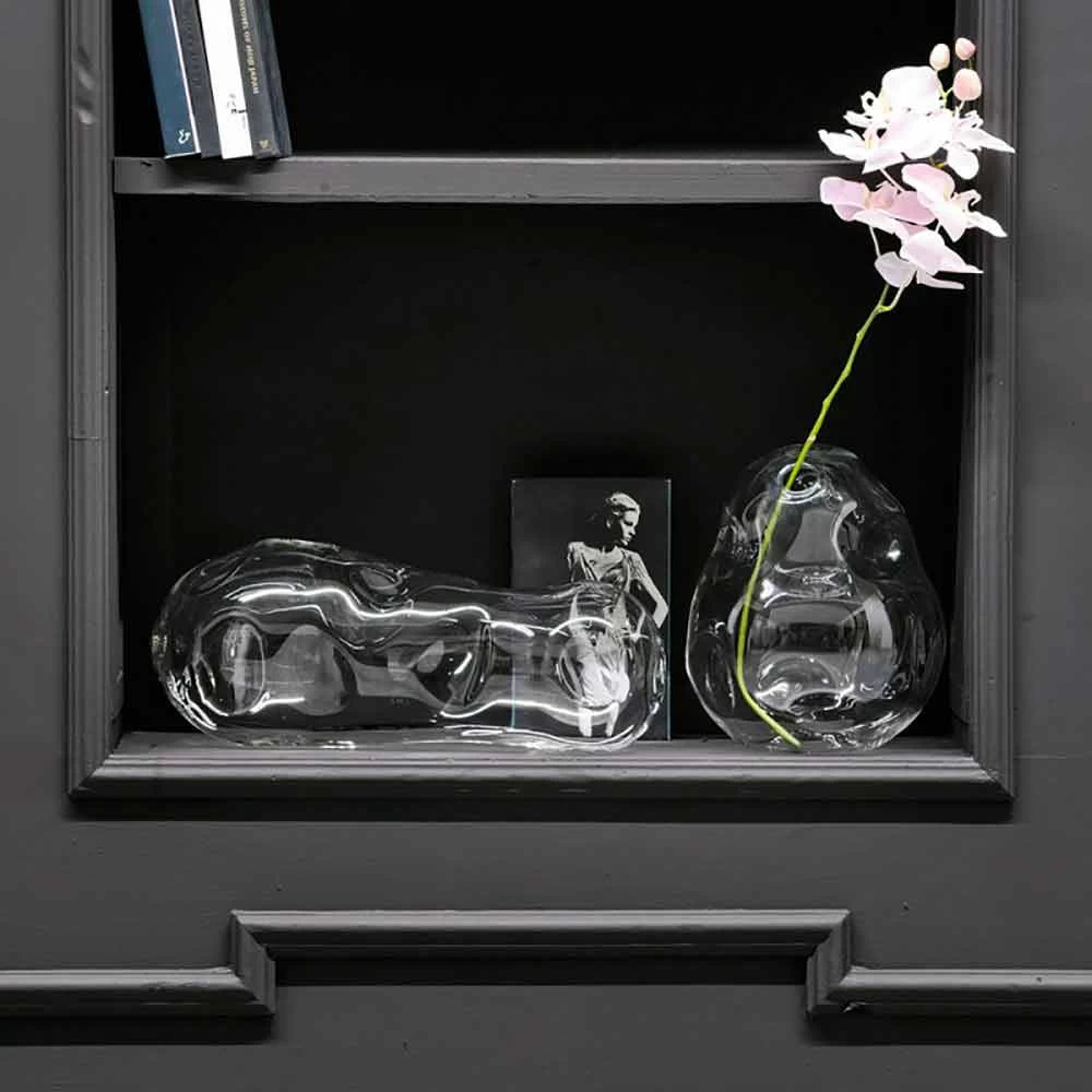 Paire originale de vases décoratifs fabriqués en Italie en verre soufflé transparent au design excentrique. Originalité, créativité et élégance sont les caractéristiques particulières de cette composition de vases modernes qui s’unissent pour donner vie à une solution d’ameublement extrêmement inhabituelle et imaginative . La passion et l’expérience des maîtres du verre soufflé permettent de créer une véritable œuvre d’art et d’augmenter encore plus sa valeur est le fait que chaque pièce est unique et irremplaçable car elle est marquée par de petites différences qui la soulignent. la valeur. Le résultat sera donc un complément de design capable de gagner toutes les attentions grâce à sa personnalité exclusive et son caractère original .