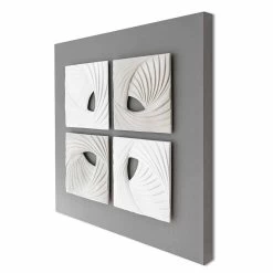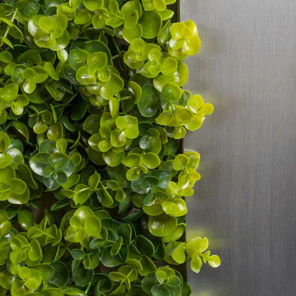 Panneau mural décoratif fabriqué en Italie avec structure en métal chromé et inserts en feuilles d’eucalyptus artificielles . Une idée de mobilier qui naît de la rencontre insolite entre les beautés de la nature et un design moderne, soulignant de manière exclusive le charme des deux mondes. Ce qui est né est un complément décoratif avec une âme sophistiquée qui sait meubler et remplir n’importe quel environnement domestique ou contract avec un style contemporain grâce à son extrême polyvalence et son minimalisme raffiné . Idéal pour donner une impression de tridimensionnalité aux murs de votre maison, ce panneau joue un rôle fondamental en captant toutes les attentions grâce à son âme originale et créative qui amène l’esprit dans un paysage verdoyant offrant paix et tranquillité .
