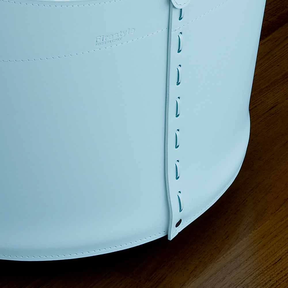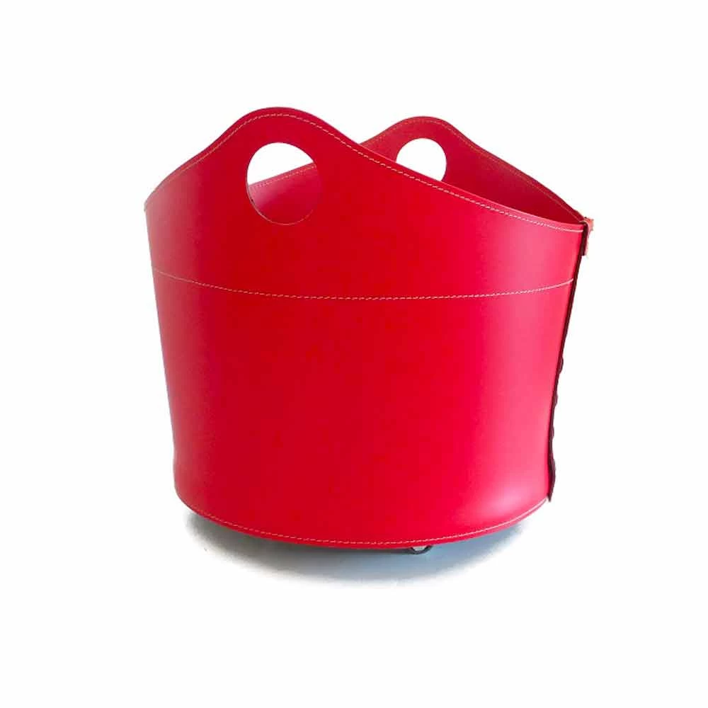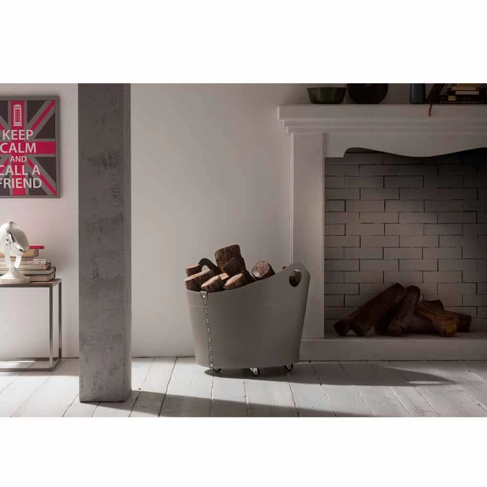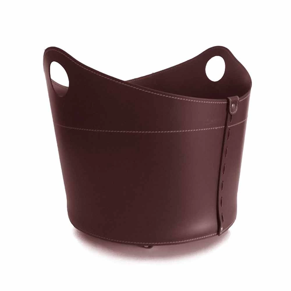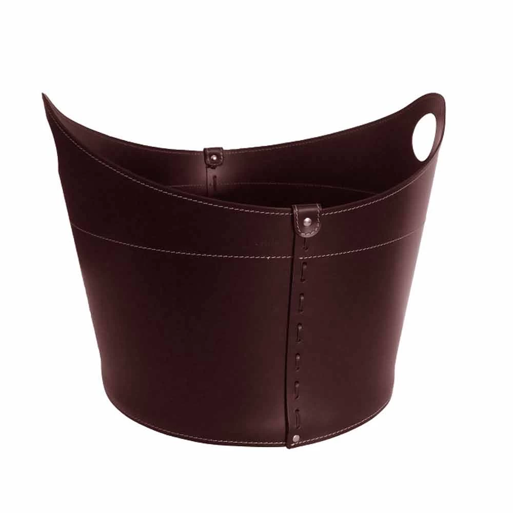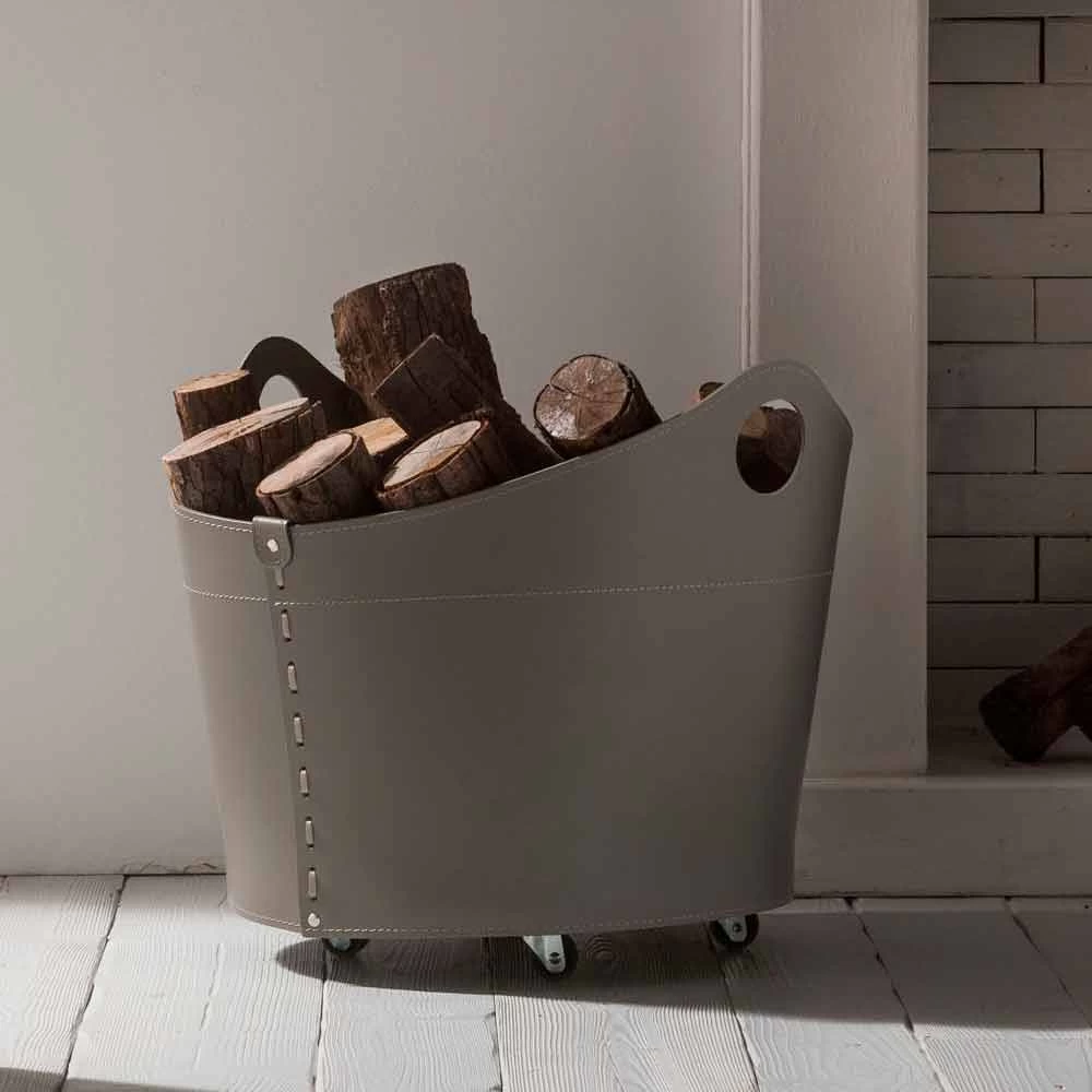 Ce porte-bûches est fait entièrement à la main en Italie par des artisans qualifié qui utilisent exclusivement des matériaux de haute qualité, comme le cuir régéneré. La base est faite en bois stratifiée revêtu en cuir. Il est doté de deux poignée et de roues qui vous permettent de le déplacer facilement. Le coutures sont visibles.