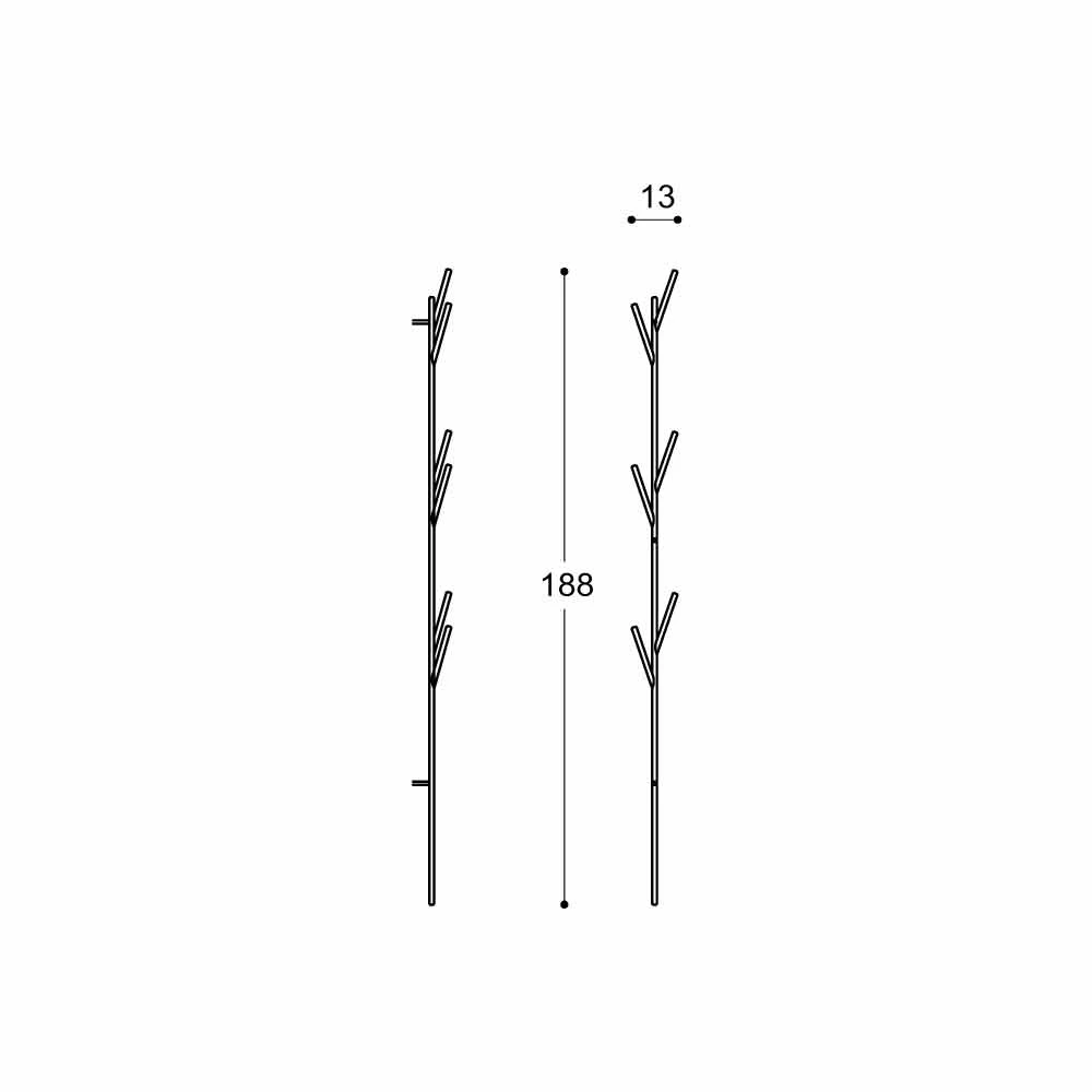 Porte-manteau stylisé en forme d’arbre en métal peint. Ses « branches », disposées au hasard, font office de porte-serviettes ou de peignoir.