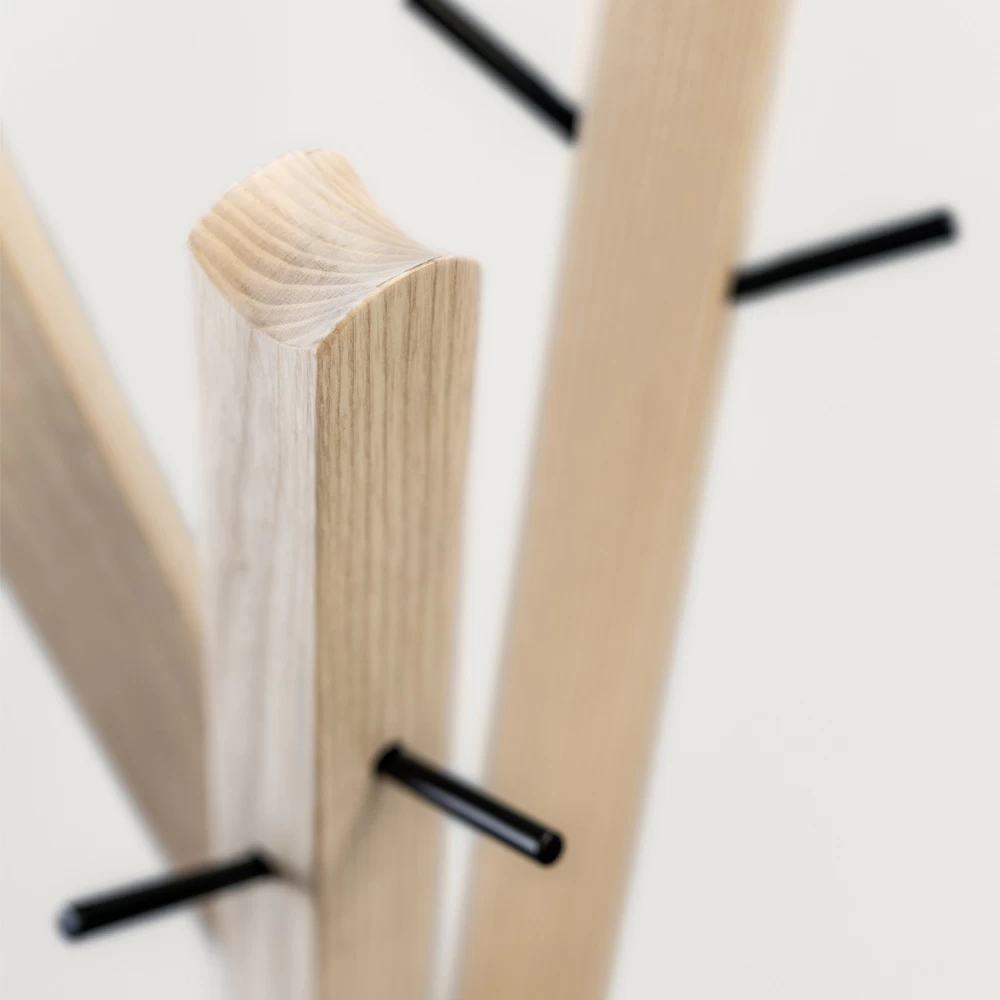 Porte-manteau en frêne massif avec base en métal et chevilles Fabriqué en Italie.
