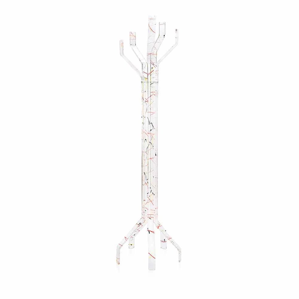 Andrea est un portemanteau asymétrique à 5 bras, composé de plexiglas 100% polymère vierge et de peinture en aérosol le rendant multicolore.