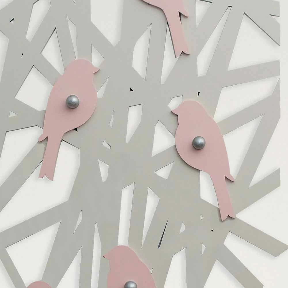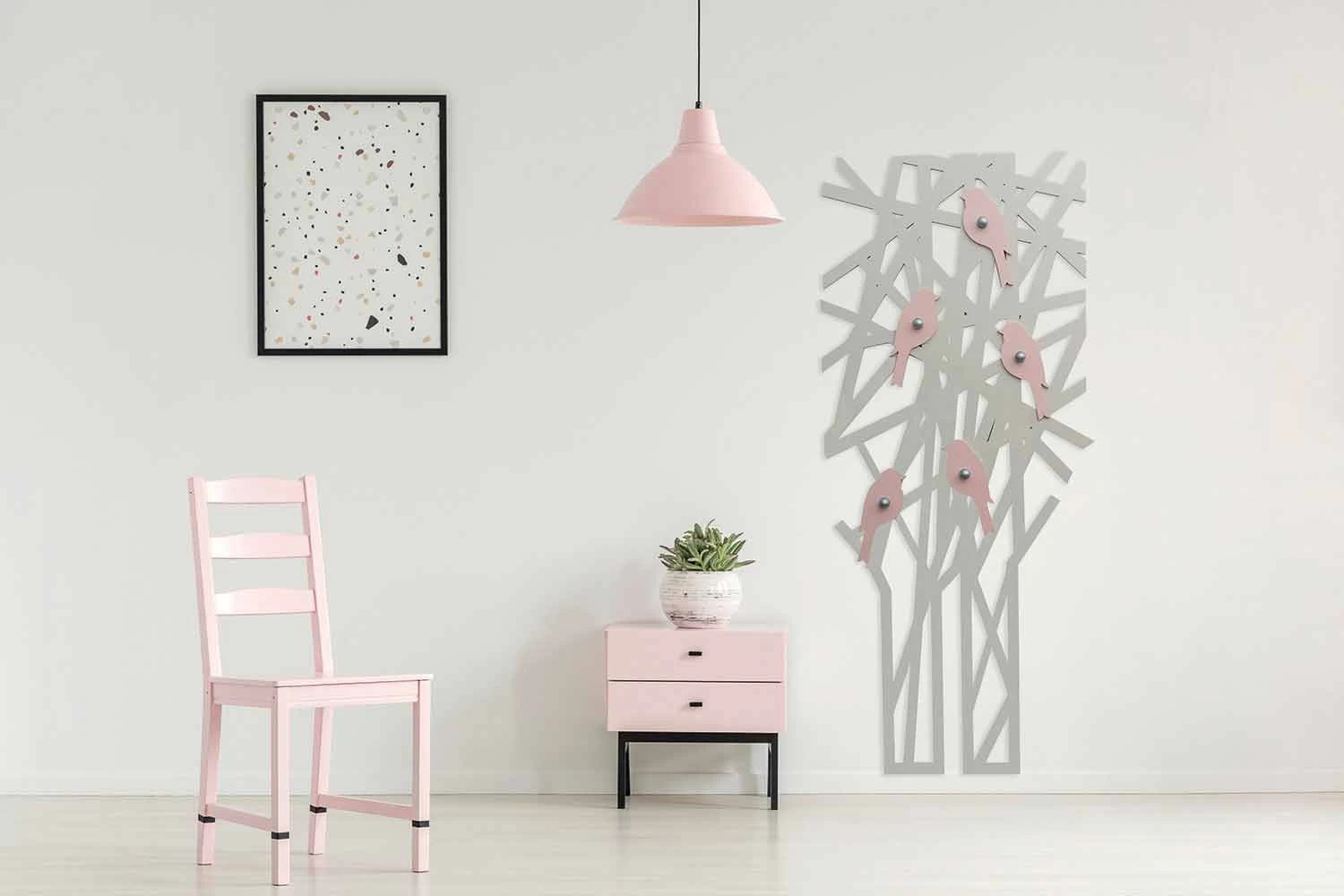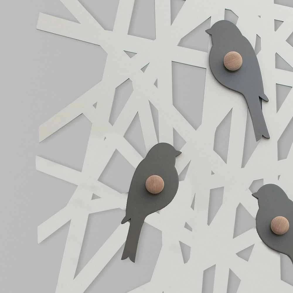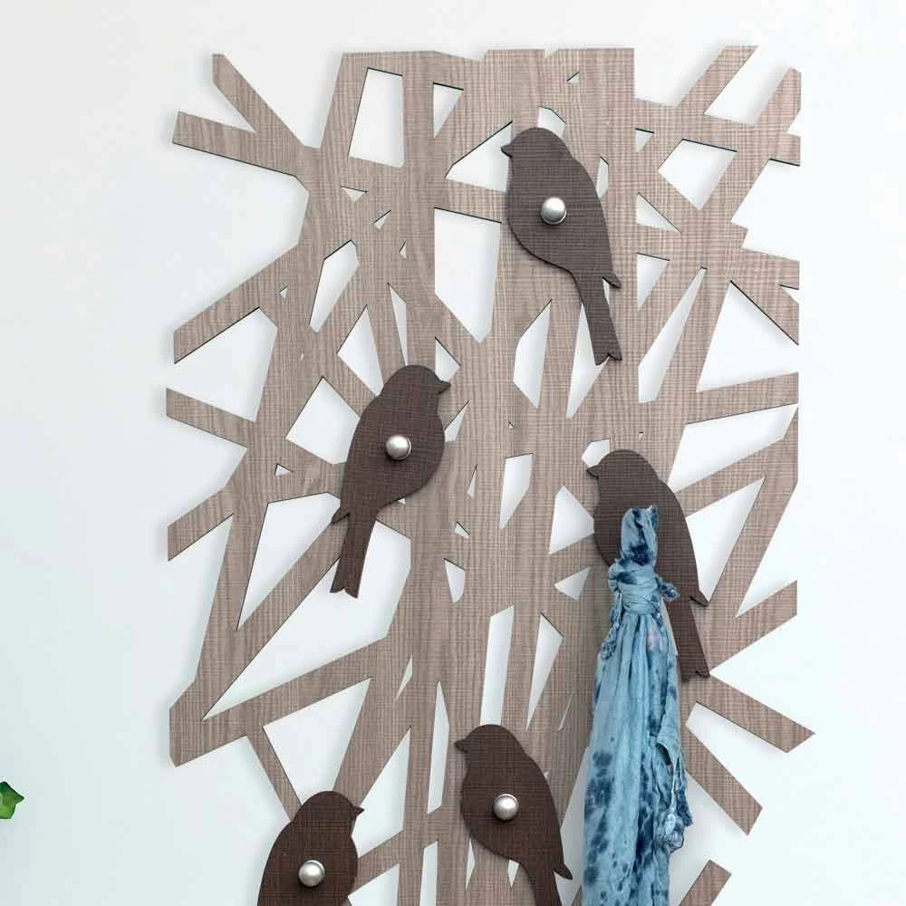 Support mural pour entrée, design moderne en forme d’arbre stylisé avec des oiseaux, fabriqué en Italie.