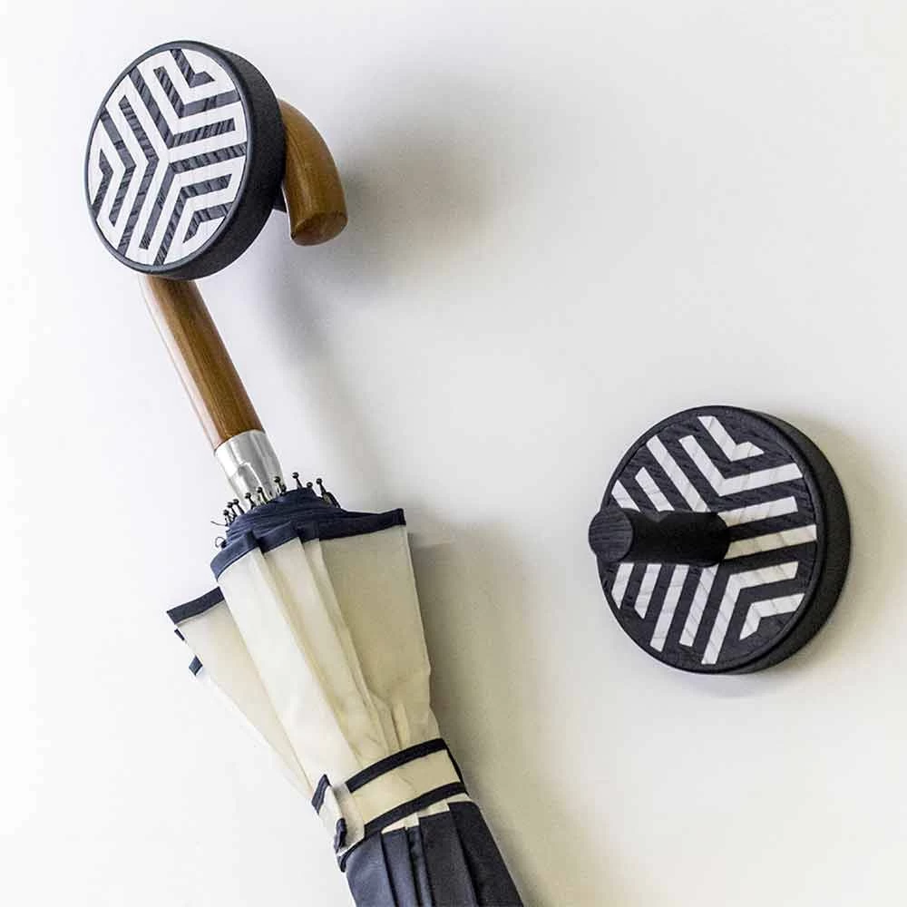Disponible en trois finitions où le protagoniste linéaire et élégant du cintre rappelle le dynamisme des pointes d’une flèche , rehaussant la matérialité du matériau à travers les incrustations contrastées.