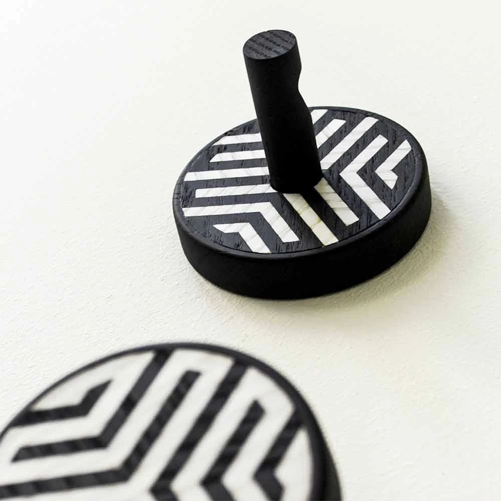Composés d’un socle en bois de frêne noir ou naturel avec incrustations , les essences précieuses du bois, les textures et les contrastes chromatiques créent un jeu de couleurs qui alterne entre le fond et le design, pour créer des compositions originales et hautement décoratives.