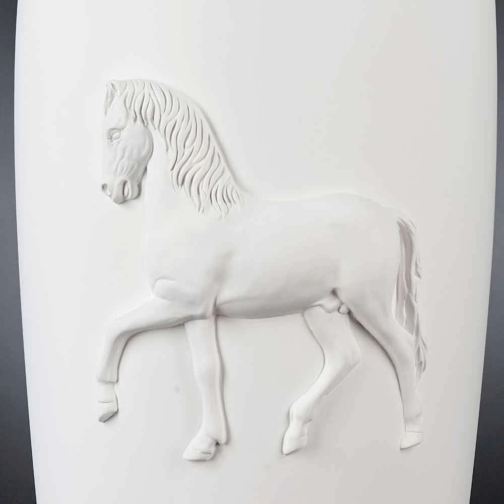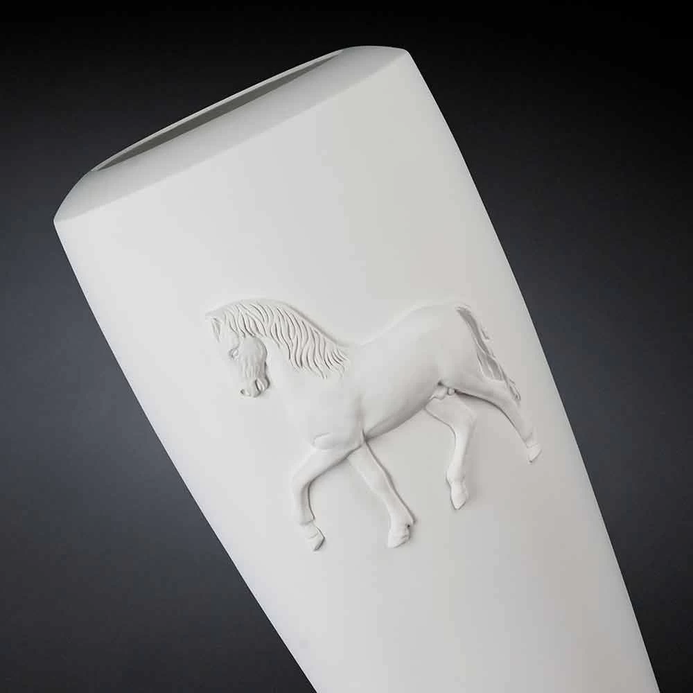 Pot décoratif de design moderne, produit d’artisanat italien, en céramique travaillée à la main, représentant un cheval en relief.