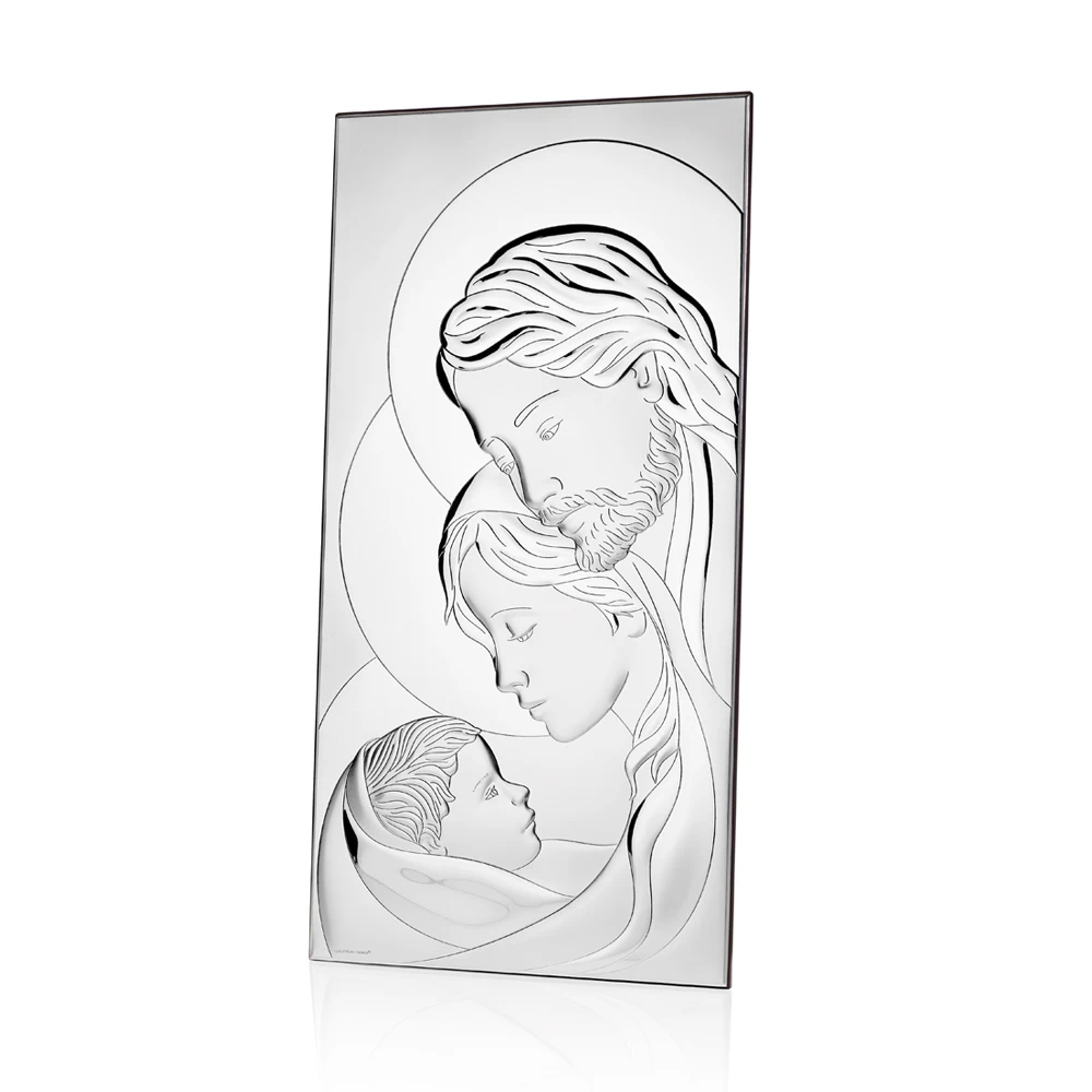Icône rectangulaire en argent artisanal de la Sainte Famille en 2 tailles.