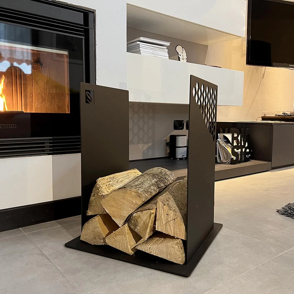 Porte-bûches pour cheminée en acier enduit de poudre non toxique de haute qualité. Conçu, conçu et fabriqué à la main en Italie, dans le but de mettre en évidence non seulement l’utilité du porte-bûches lui-même, mais aussi sa valeur esthétique.