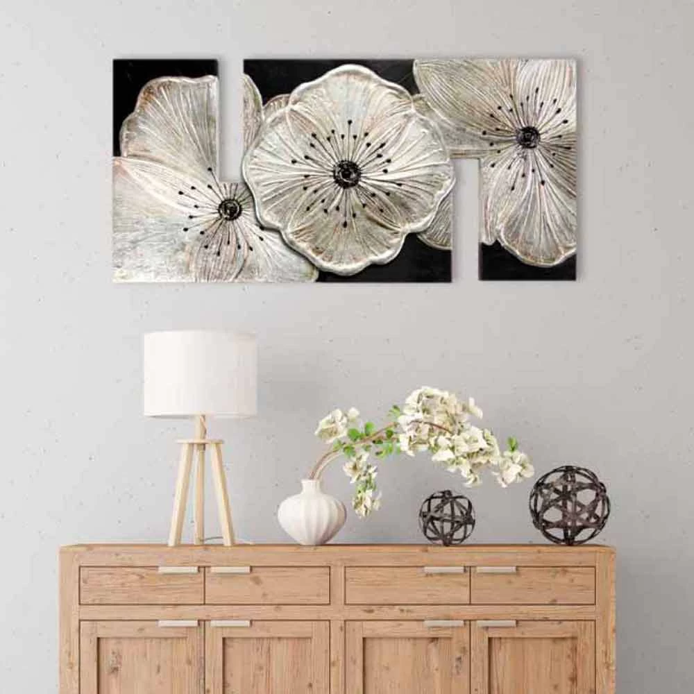 Tableau de design italien fleurs Petunia Piccola Argento Viadurini Decor, décoré à la main