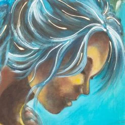 Décoré à la main avec feuille d’or et résine; la structure de la toile est renforcée.