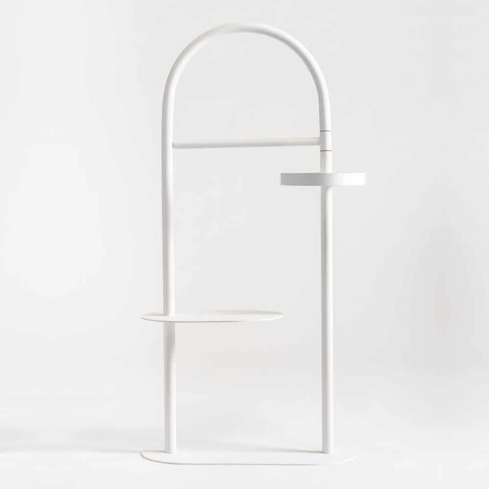 Le valet est un élément indispensable pour organiser les vêtements de votre chambre ou dressing et il est donc important de choisir le bon en tenant compte de vos besoins et du mobilier environnant. Ce produit est entièrement fabriqué en Italie et se caractérise par un design minimal mais percutant grâce à sa forme en arc semi-circulaire qui devient un bras pivotant pratique et fonctionnel. Sa structure est en acier peint RAL et dispose de deux étagères pratiques idéales pour placer des objets tels que des verres, des clés ou tout accessoire que vous souhaitez avoir sous la main.